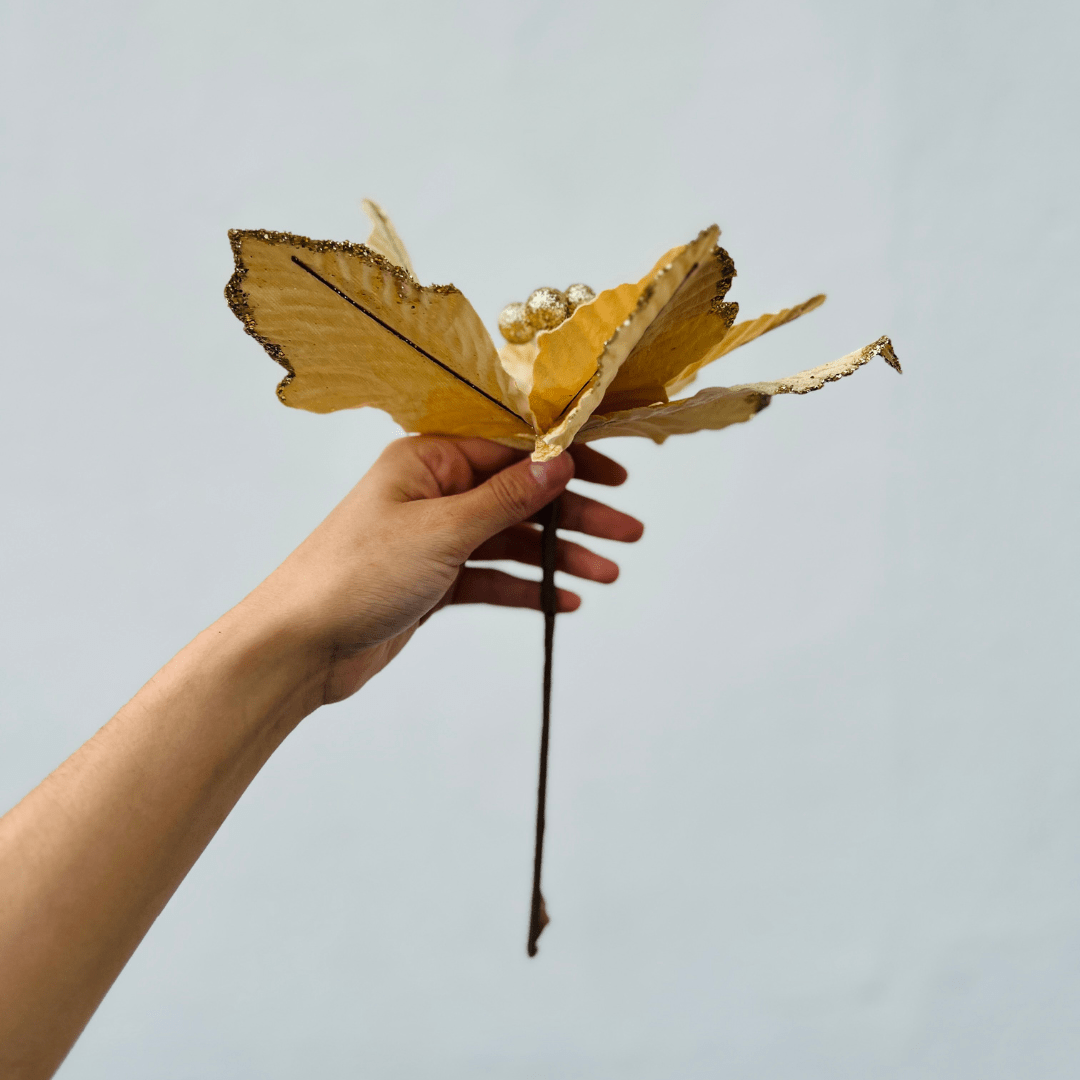 Flor Natalina Poinsetia Dourada 25cm