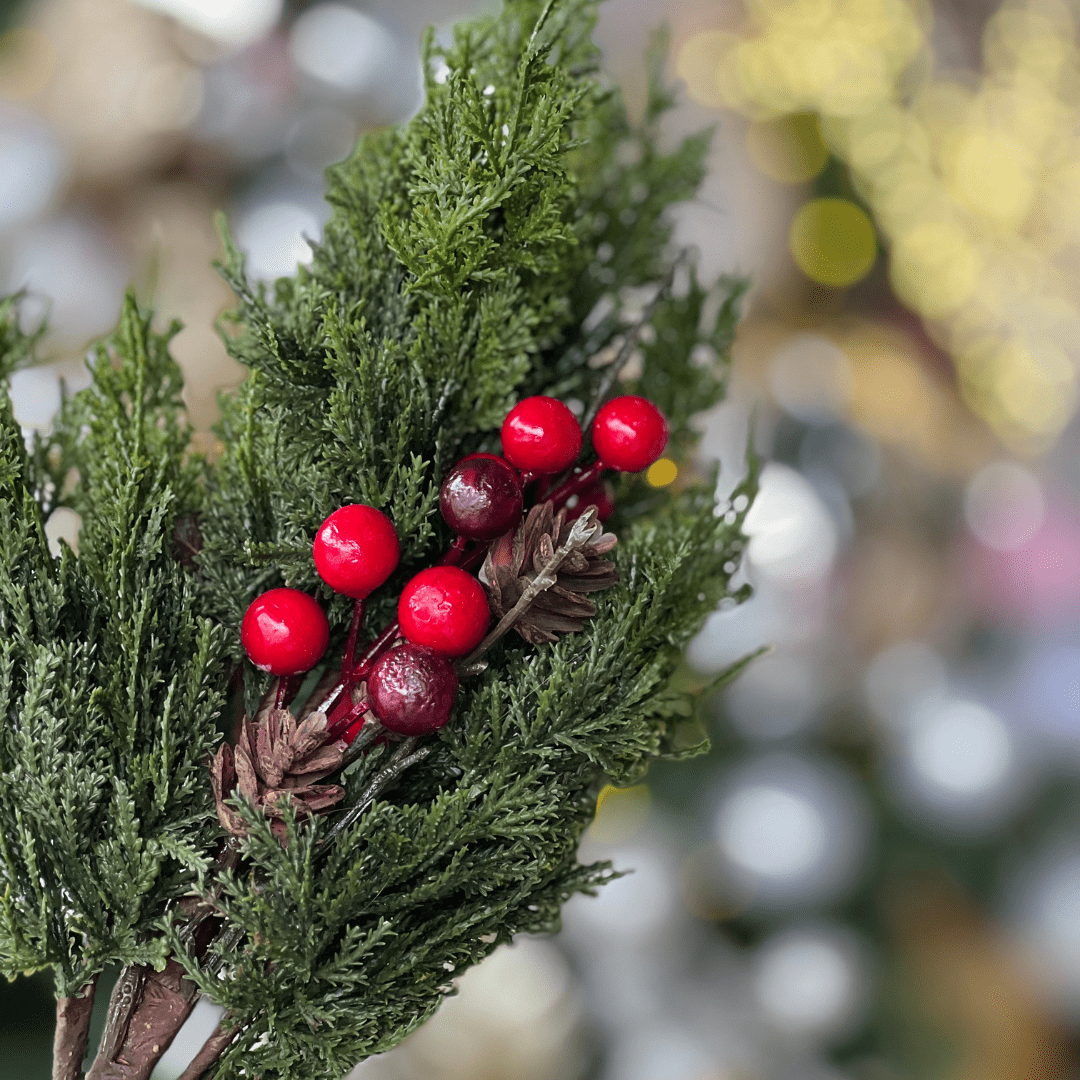 Galho Cipreste com Pinha e Berries Toque Real 45cm