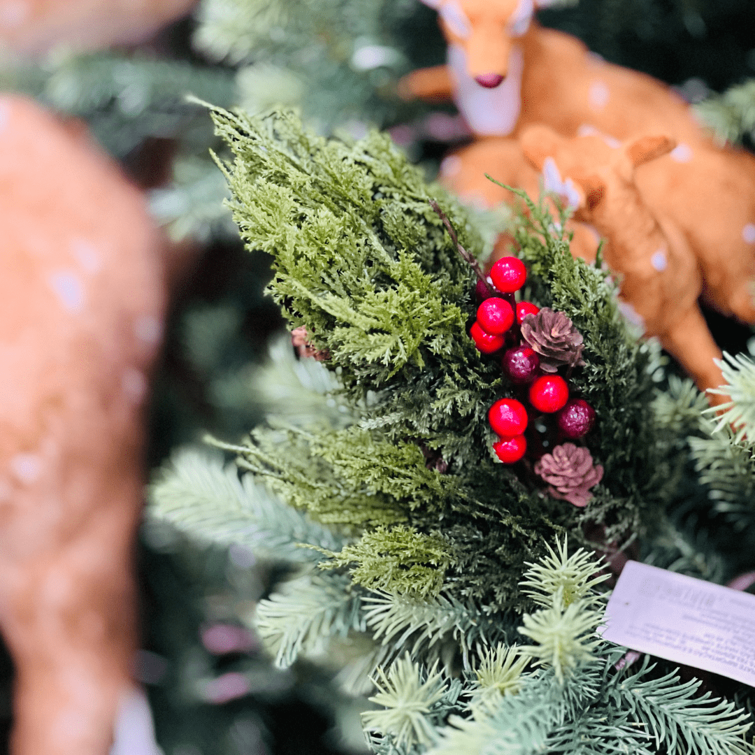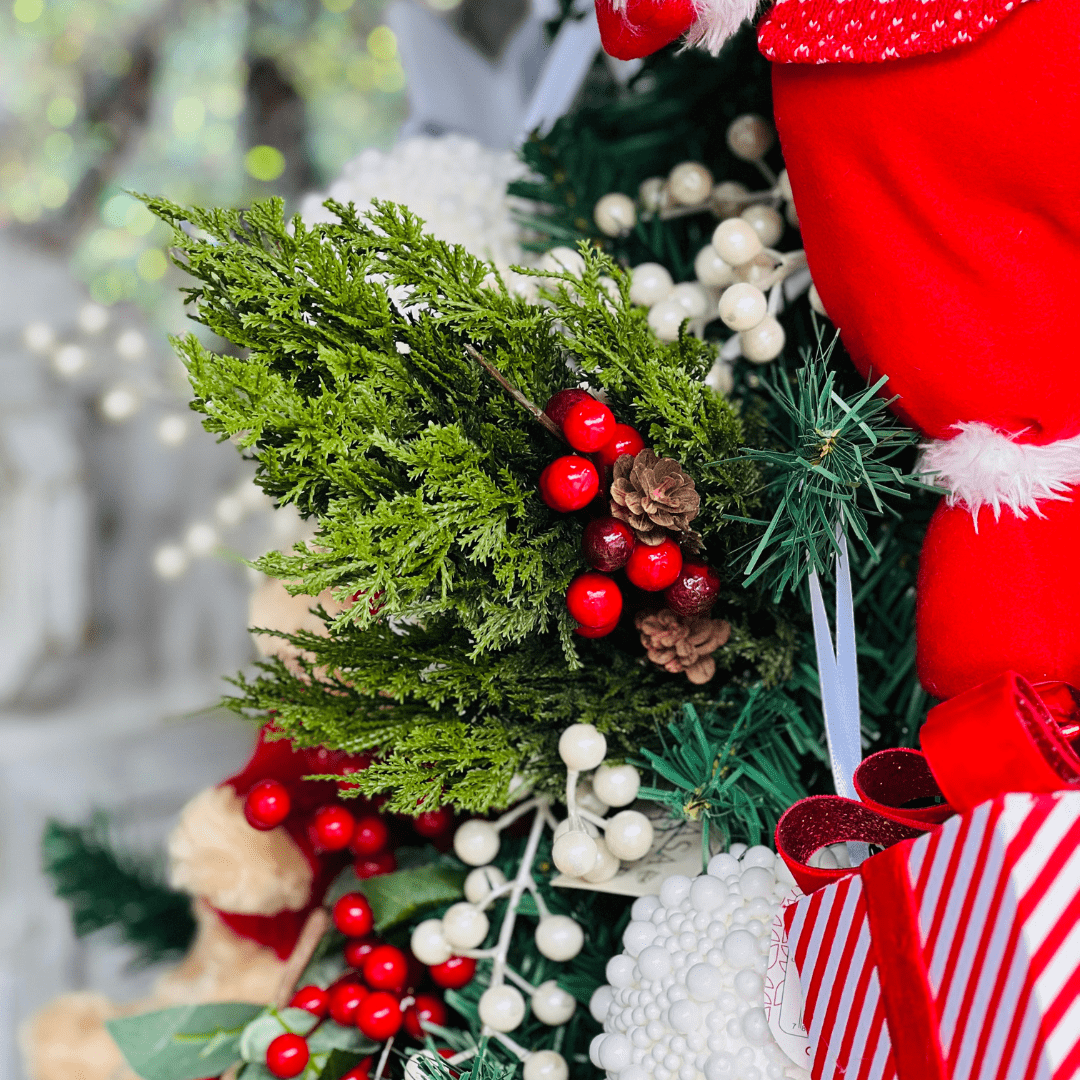 Adicione charme e realismo à sua decoração de Natal com este galho de cipreste decorativo, adornado com pinhas e berries. Com acabamento de toque realista, é ideal para complementar guirlandas, arranjos, centros de mesa ou qualquer composição natalina, trazendo sofisticação e aconchego ao ambiente.