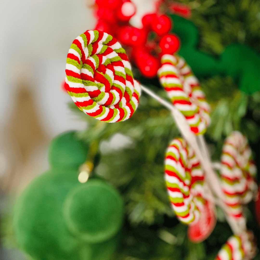 Galho Natalino Pirulito Verde, Vermelho e Branco 56cm