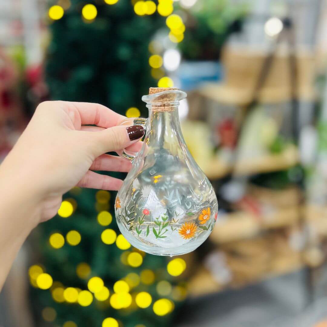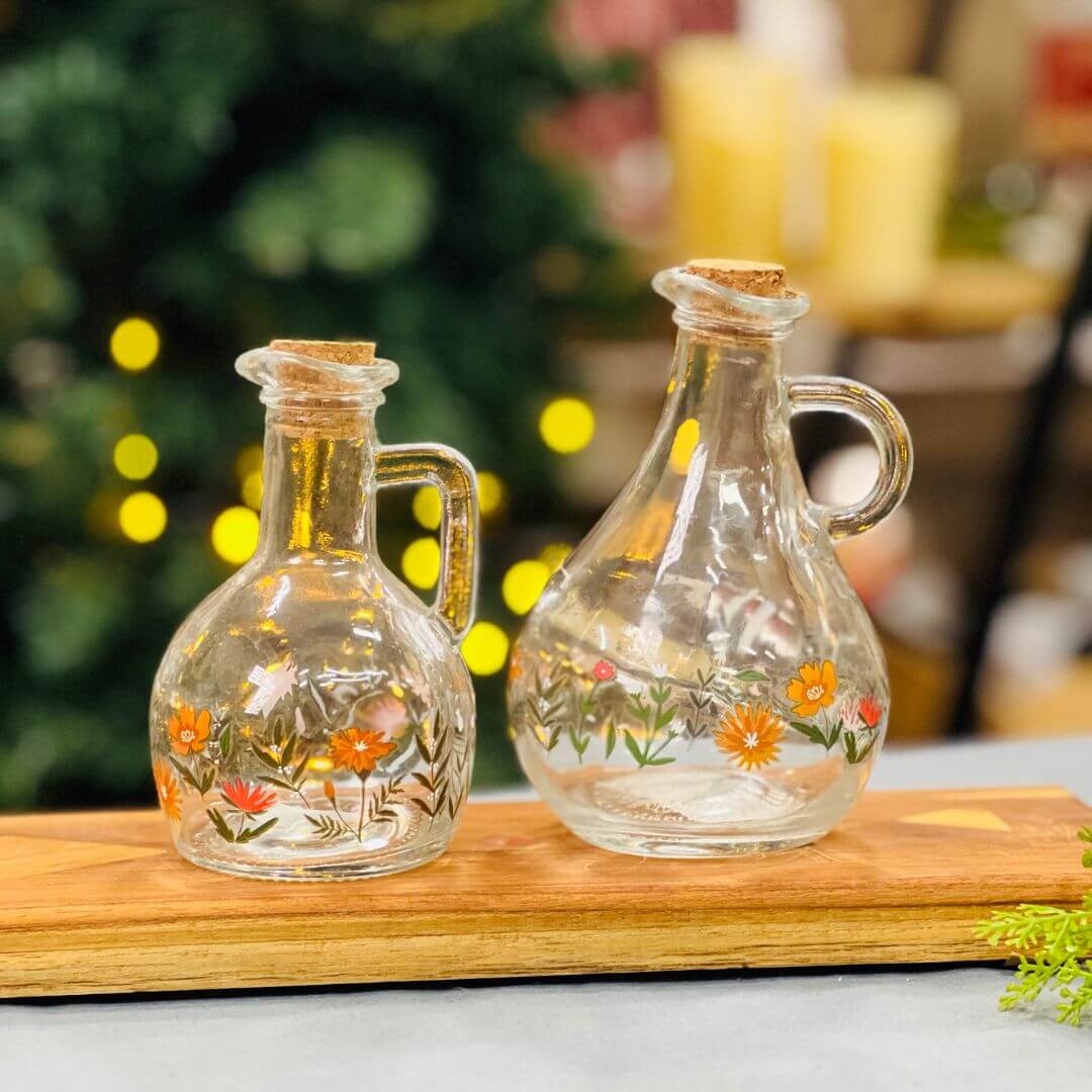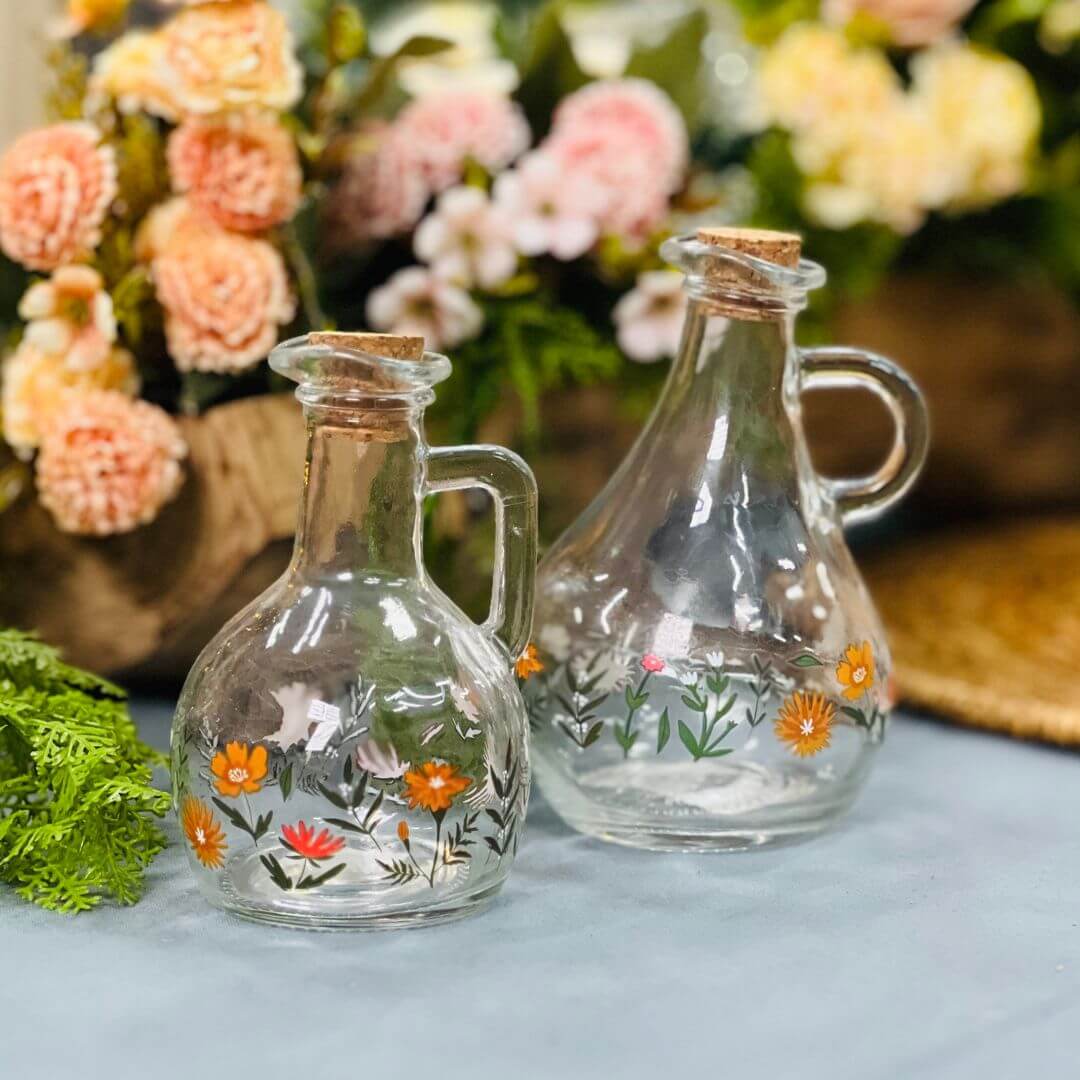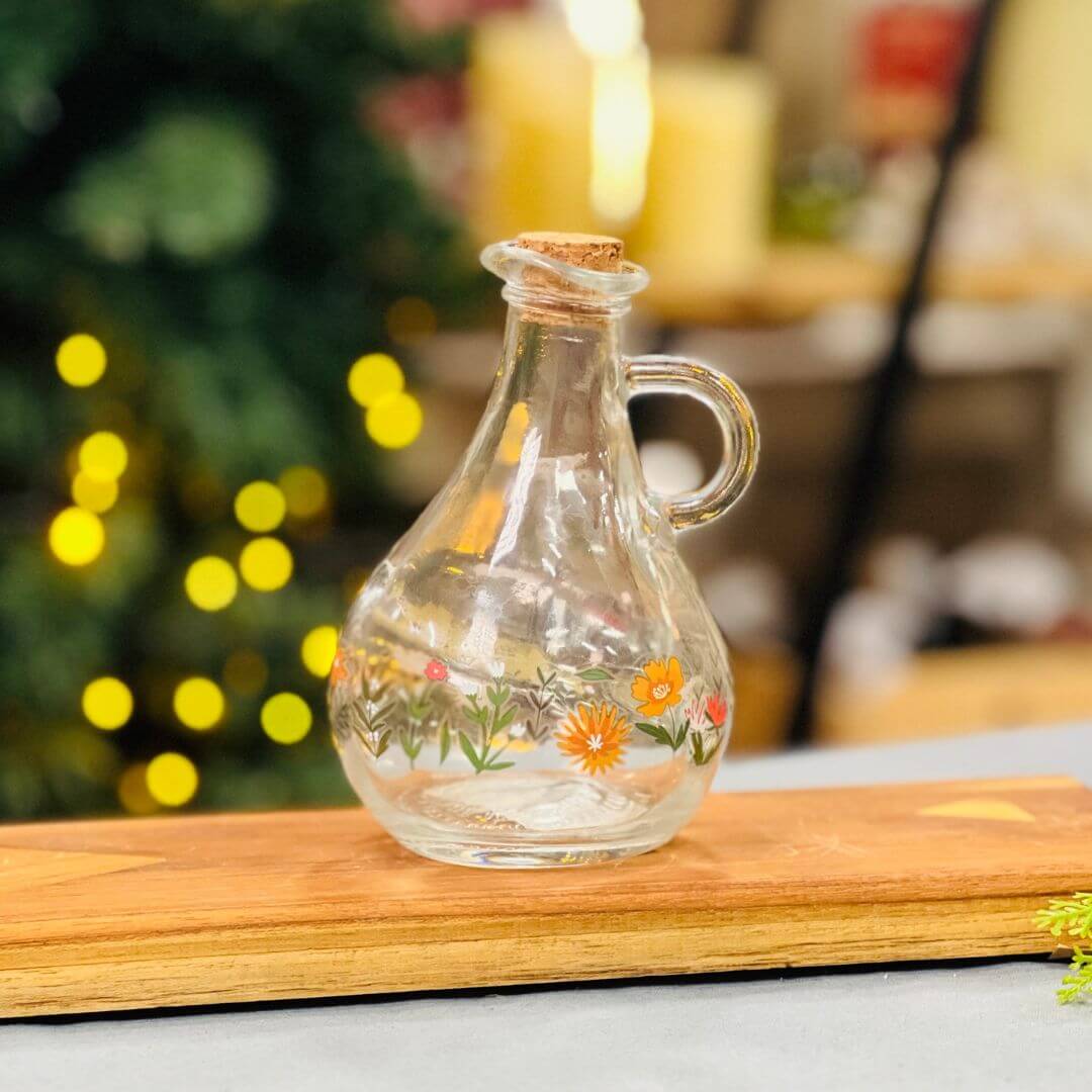 Charmosa e funcional, a Garrafa para Azeite Flora é perfeita para levar praticidade e delicadeza à sua cozinha ou mesa posta. Feita em vidro transparente com detalhes florais e tampa de rolha, proporciona um toque rústico e elegante à sua rotina, além de conservar melhor o azeite.