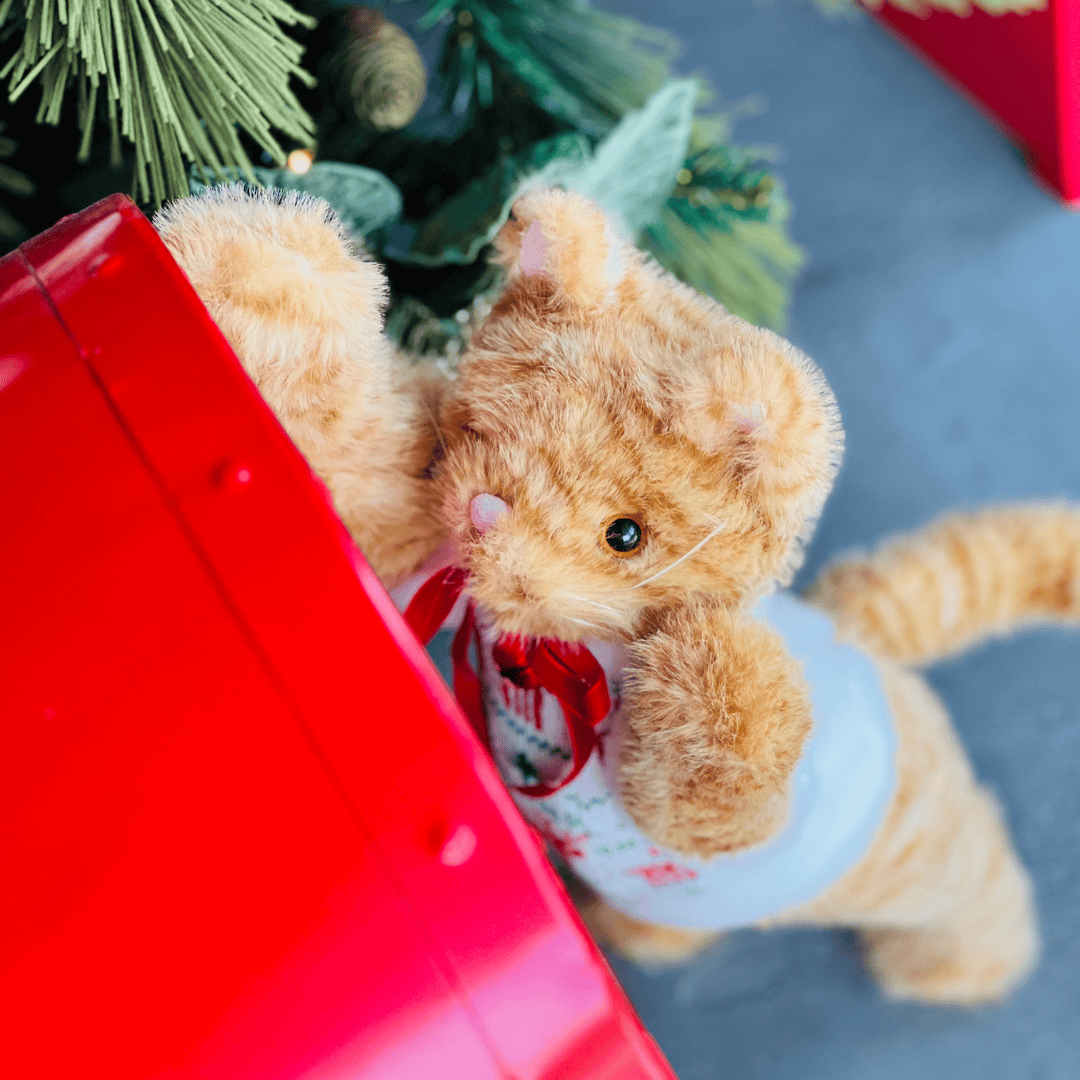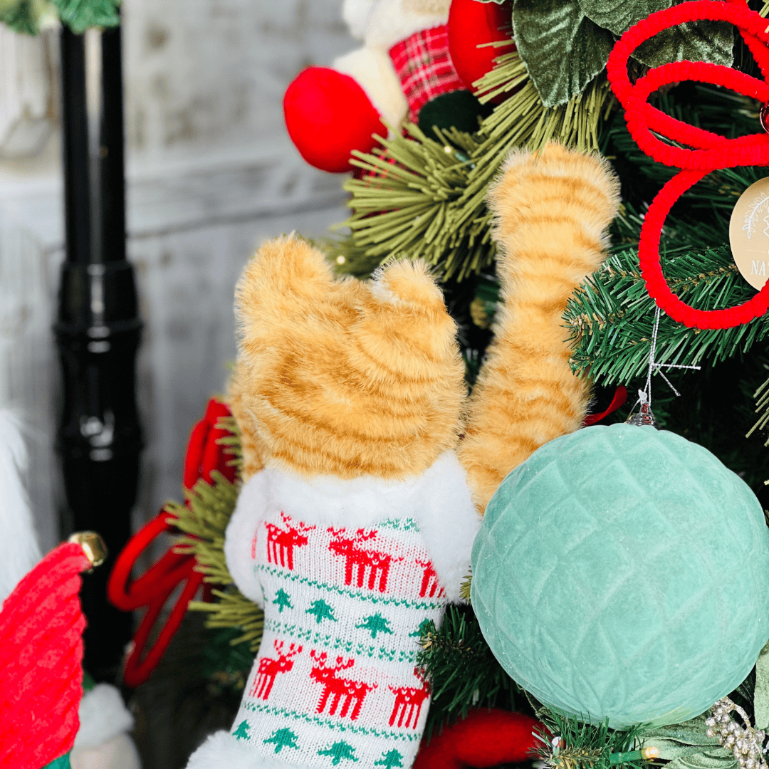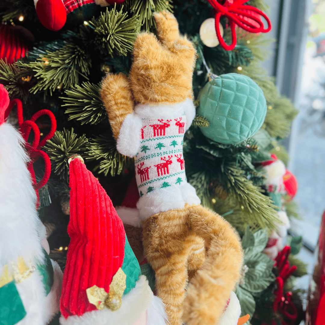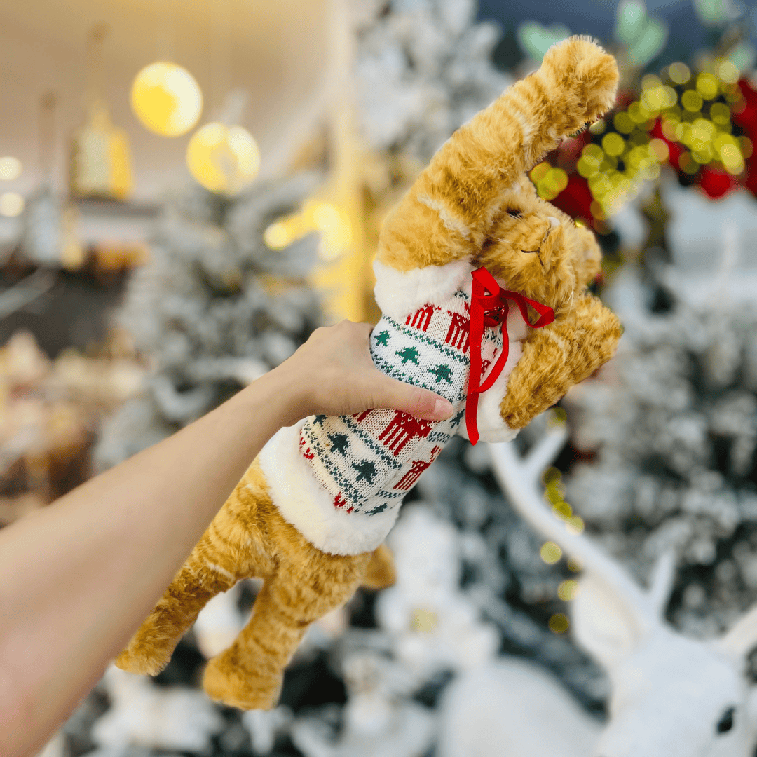 O Gatinho Laranja Natalino 57cm é uma peça encantadora que adiciona charme e alegria à decoração de Natal. Com pelagem em tom laranja e um suéter natalino, ele traz um toque acolhedor e divertido ao ambiente. Perfeito para destacar estantes, aparadores, mantas decorativas ou composições natalinas que pedem delicadeza e personalidade.