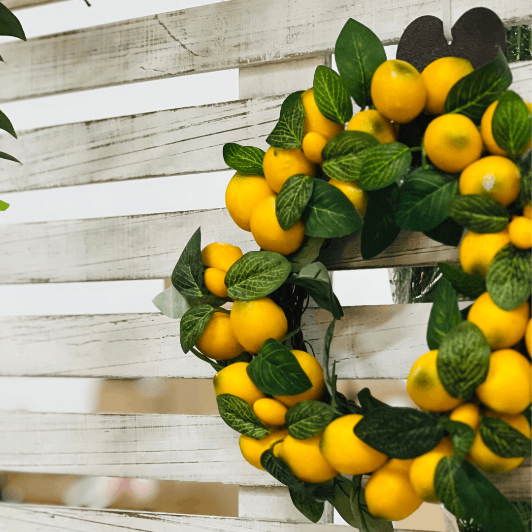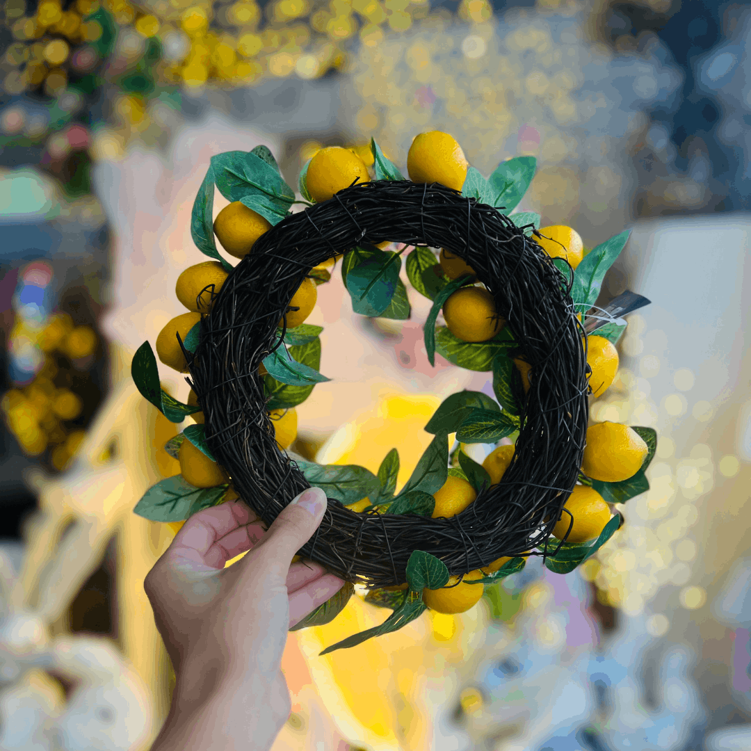 A Guirlanda de Limão Siciliano 26cm é perfeita para trazer frescor e alegria à decoração. Com composição decorativa de limões sicilianos e folhagens, é ideal para portas, paredes, cozinhas, varandas e ambientes internos, criando um visual leve e acolhedor. Seu design versátil combina com estilos rústicos, modernos e temáticos, especialmente em decorações de primavera e verão.