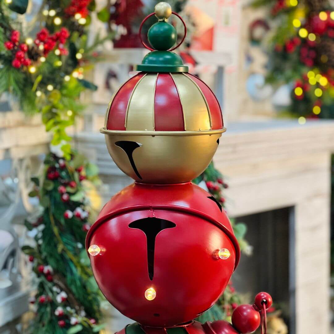 Guizo natalino decorativo com luzes de LED, trazendo as cores tradicionais do Natal: vermelho, verde e dourado. Com 88 cm de altura, é ideal para pendurar em portas, paredes, árvores ou composições temáticas, iluminando o ambiente com charme e aconchego. Perfeito para quem deseja criar uma decoração festiva e envolvente.