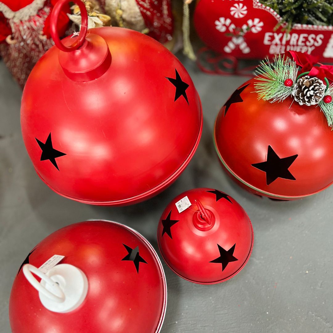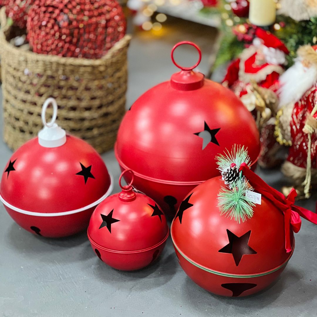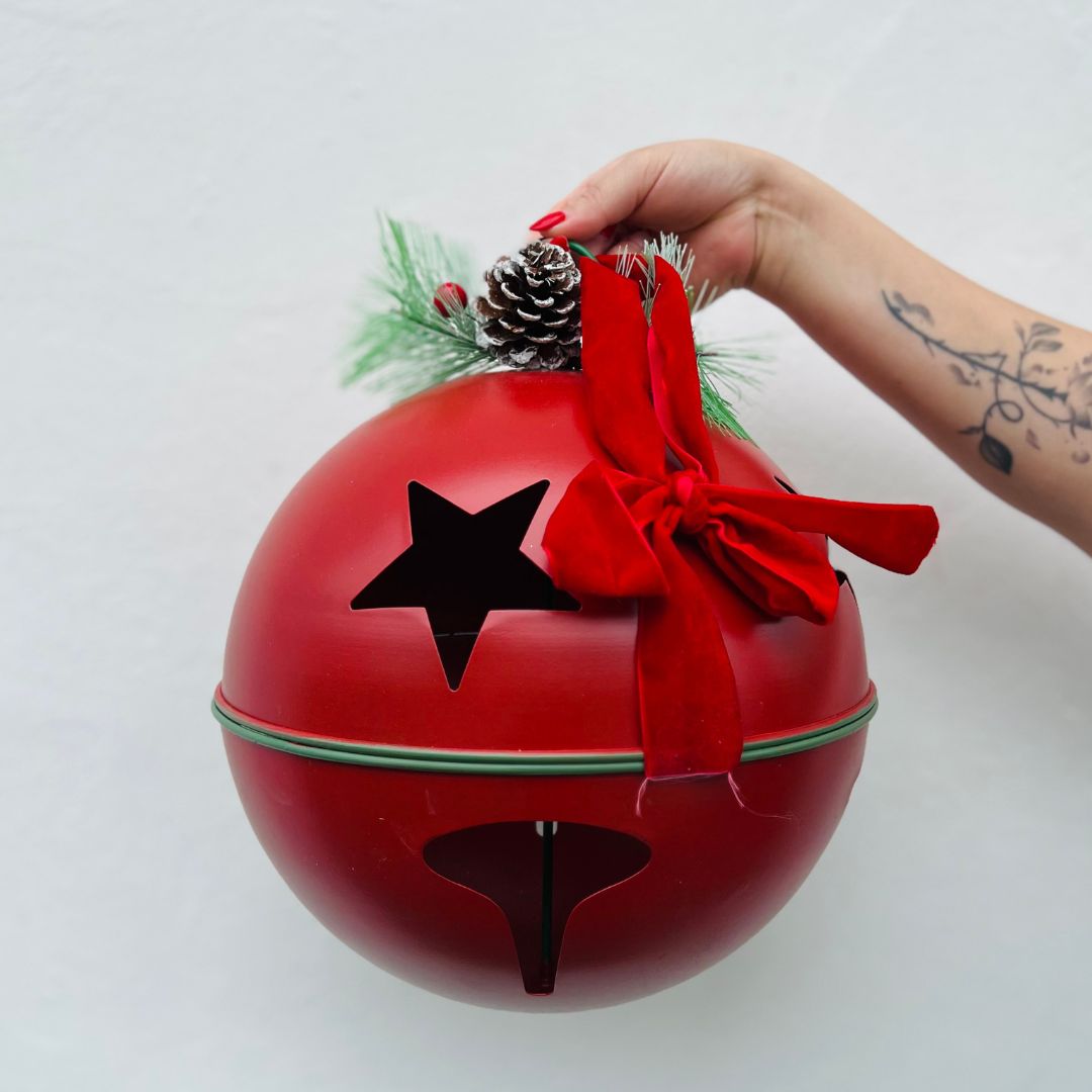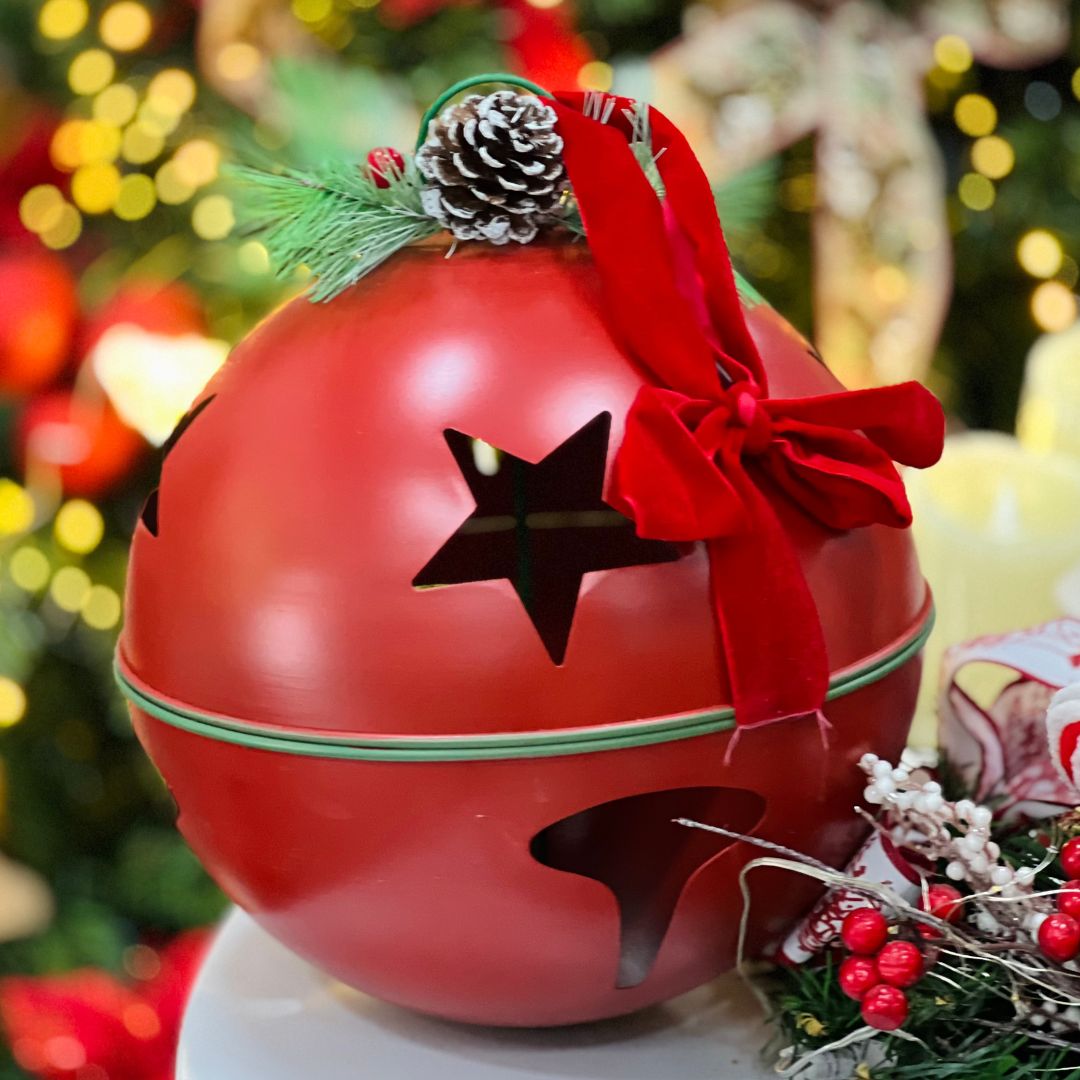 Guizo Natalino de Metal Vermelho Com Corda Veludo 30x30x30cm