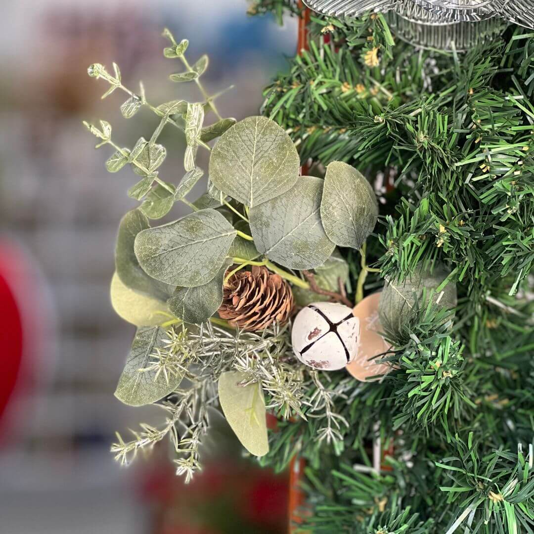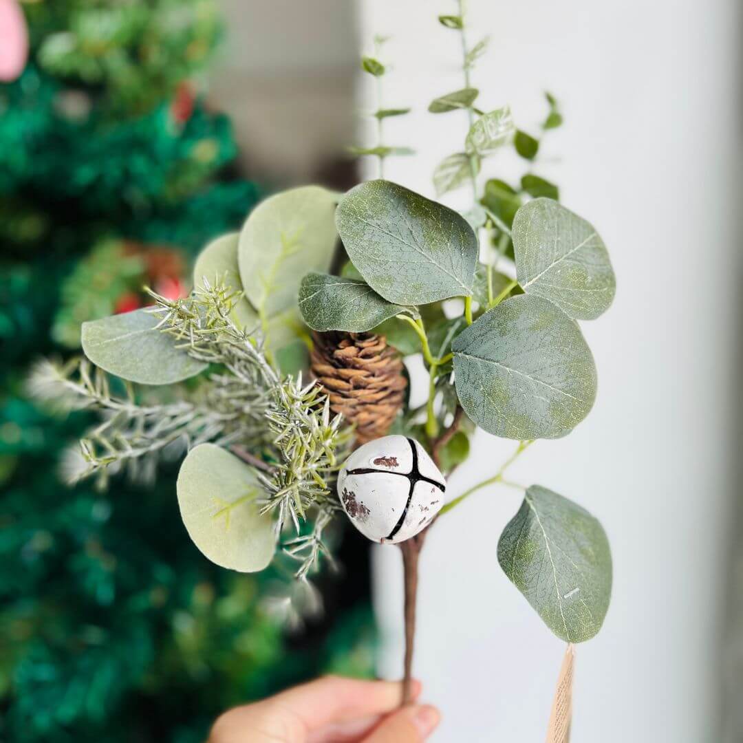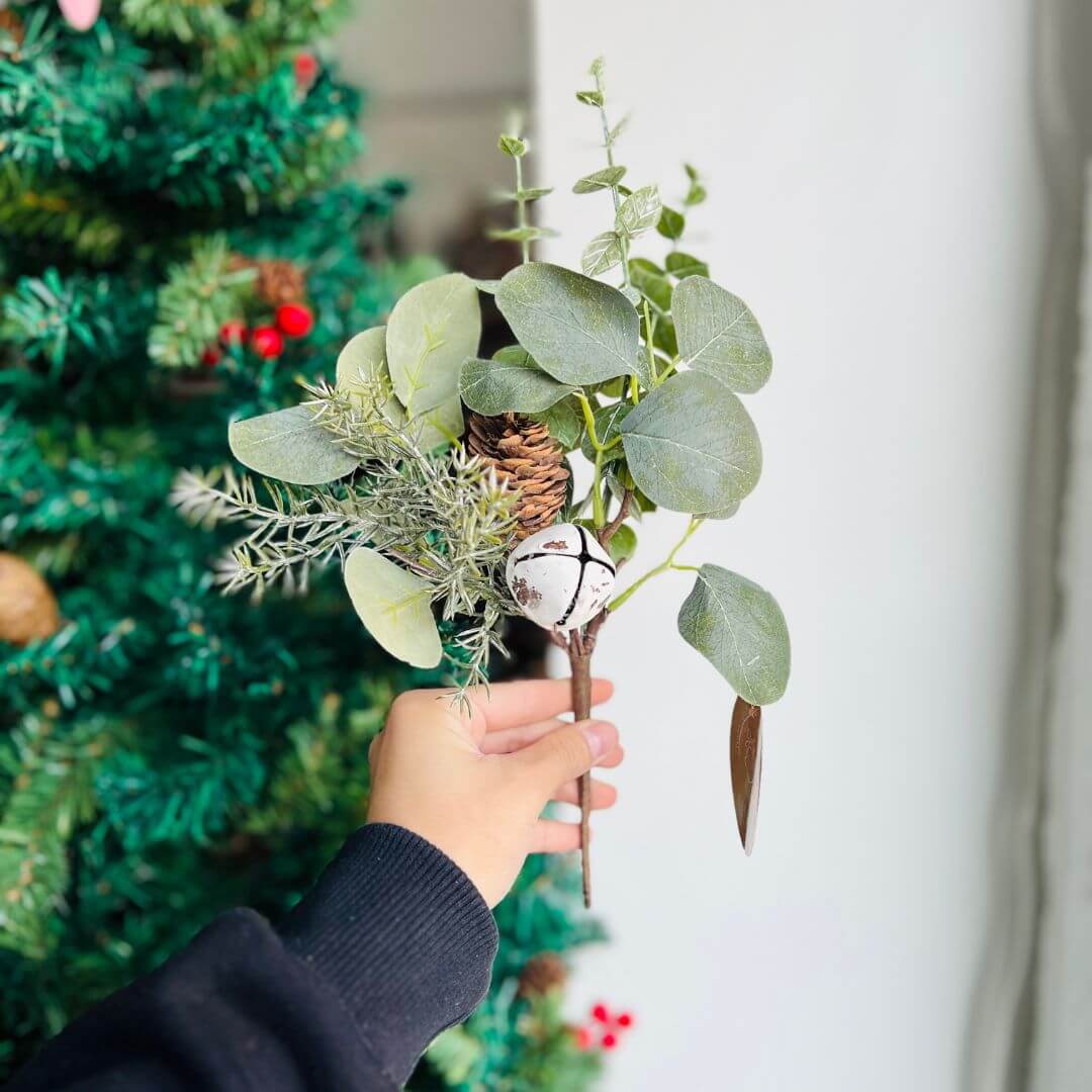 Adicione um toque festivo e sonoro à sua decoração com a Haste Folhagem com Guizo de 36cm. Ideal para complementar arranjos, árvores de Natal, guirlandas ou vasos decorativos, ela combina folhagens elegantes com o charme dos guizos, criando um efeito encantador e natalino.