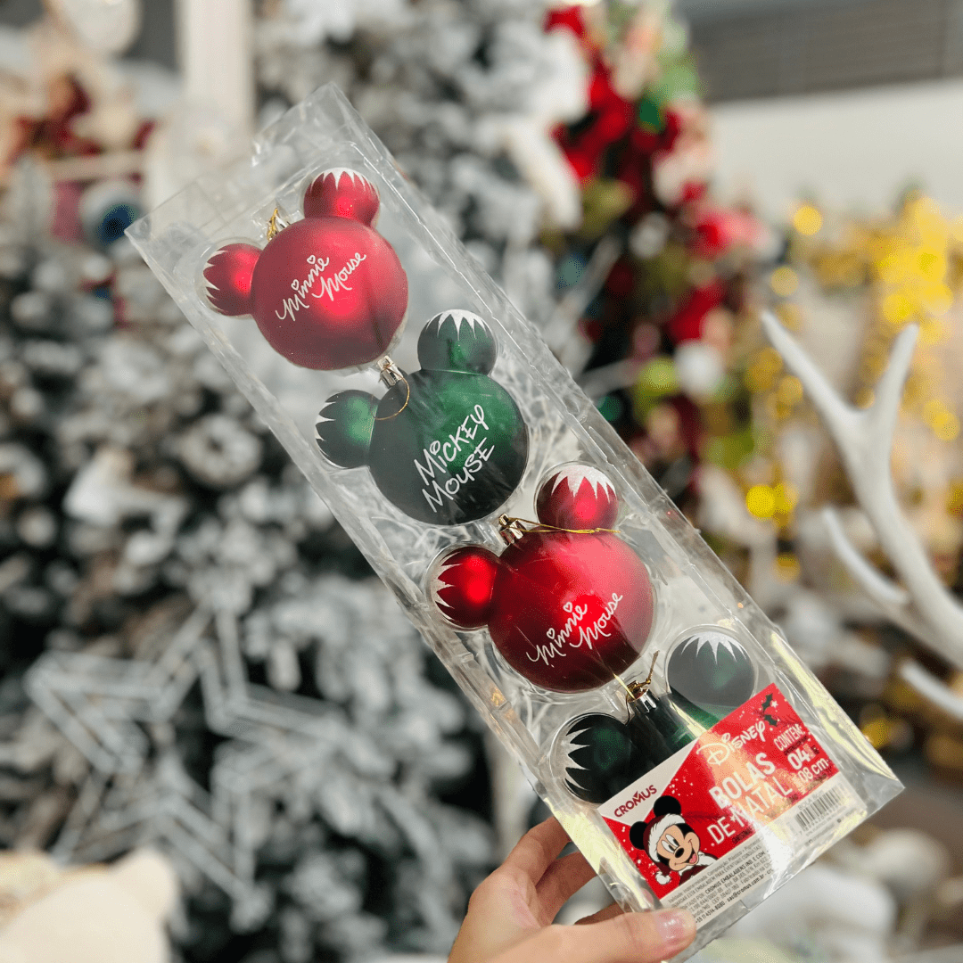 O Jogo 4 Bolas Natalinas Assinatura Mickey e Minnie 8cm é uma opção encantadora para quem deseja adicionar um toque Disney à decoração de Natal. Cada bola apresenta o icônico formato e assinatura dos personagens Mickey e Minnie, combinando elegância e diversão em um design clássico que agrada adultos e crianças. Ideal para decorar árvores, guirlandas ou centros de mesa com estilo e nostalgia.