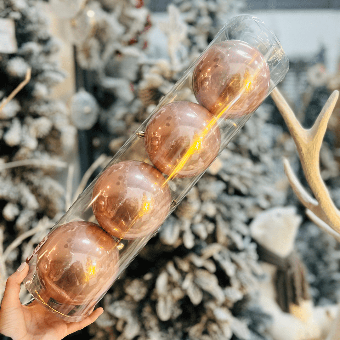 Adicione charme e delicadeza à sua decoração com o Jogo de 4 Bolas Natalinas Peroladas Rosê. Com acabamento suave e brilho perolado, elas proporcionam um toque elegante e romântico à árvore de Natal ou a arranjos decorativos.