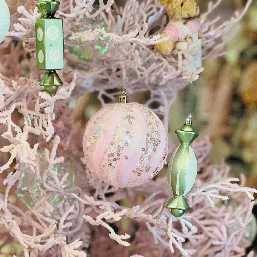 Adicione sofisticação e brilho à sua árvore de Natal com o Jogo de 4 Bolas Natalinas Rosa com Listras de Glitter. Com acabamento cintilante e design delicado, essas bolas são perfeitas para criar um visual elegante e festivo em sua decoração.