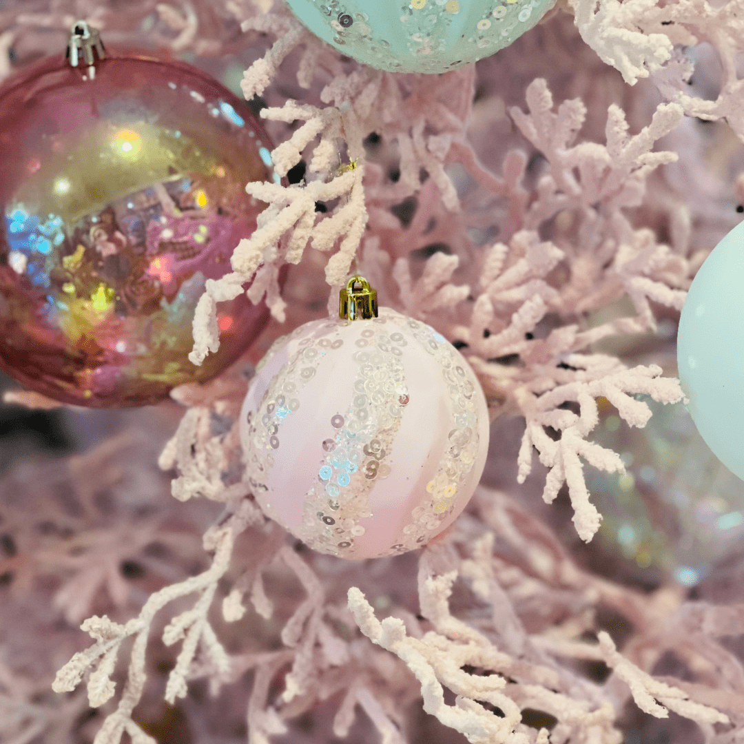 Adicione brilho e elegância à sua árvore com o Jogo de 6 Bolas Natalinas Rosa com Listras de Glitter. Com acabamento sofisticado e toque cintilante, essas bolas trazem um charme delicado e festivo, deixando sua decoração natalina ainda mais especial.