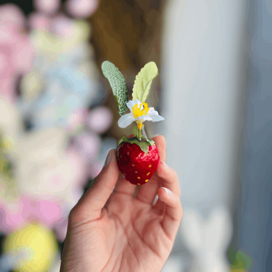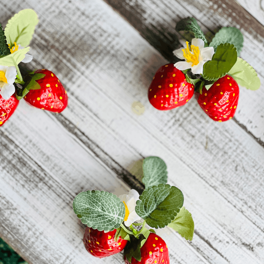 Jogo 8 Peças Decorativas de Morango com Flores - 6cm