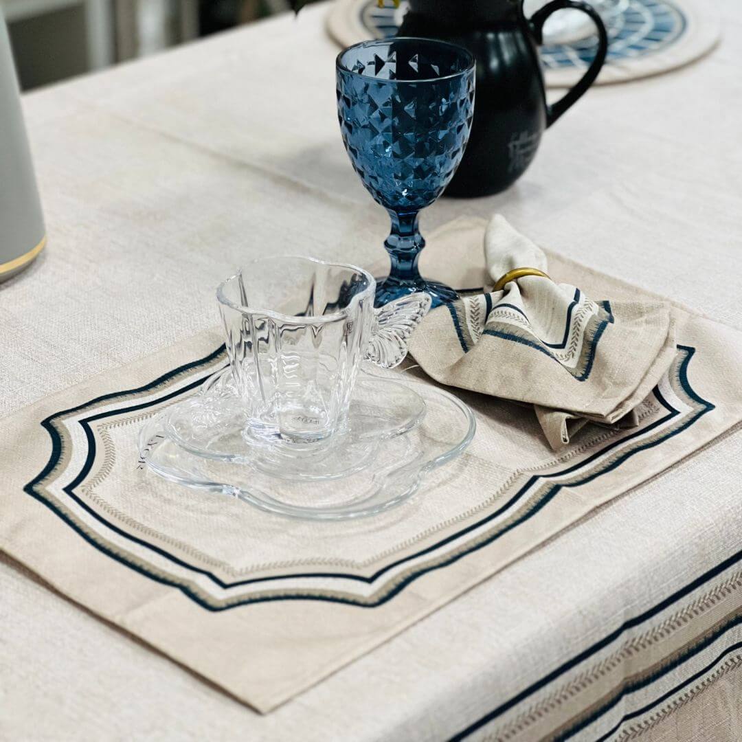 O Jogo Americano Azurite é uma peça sofisticada que combina funcionalidade e elegância para compor mesas com estilo. Fabricado em velveteen — um tecido aveludado —, oferece um toque macio e acabamento refinado. Sua superfície é repelente à água, proporcionando praticidade no uso diário.