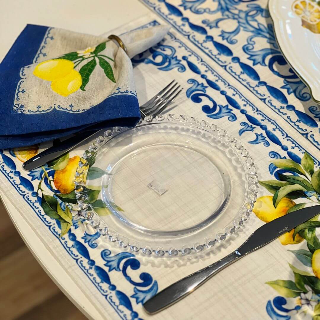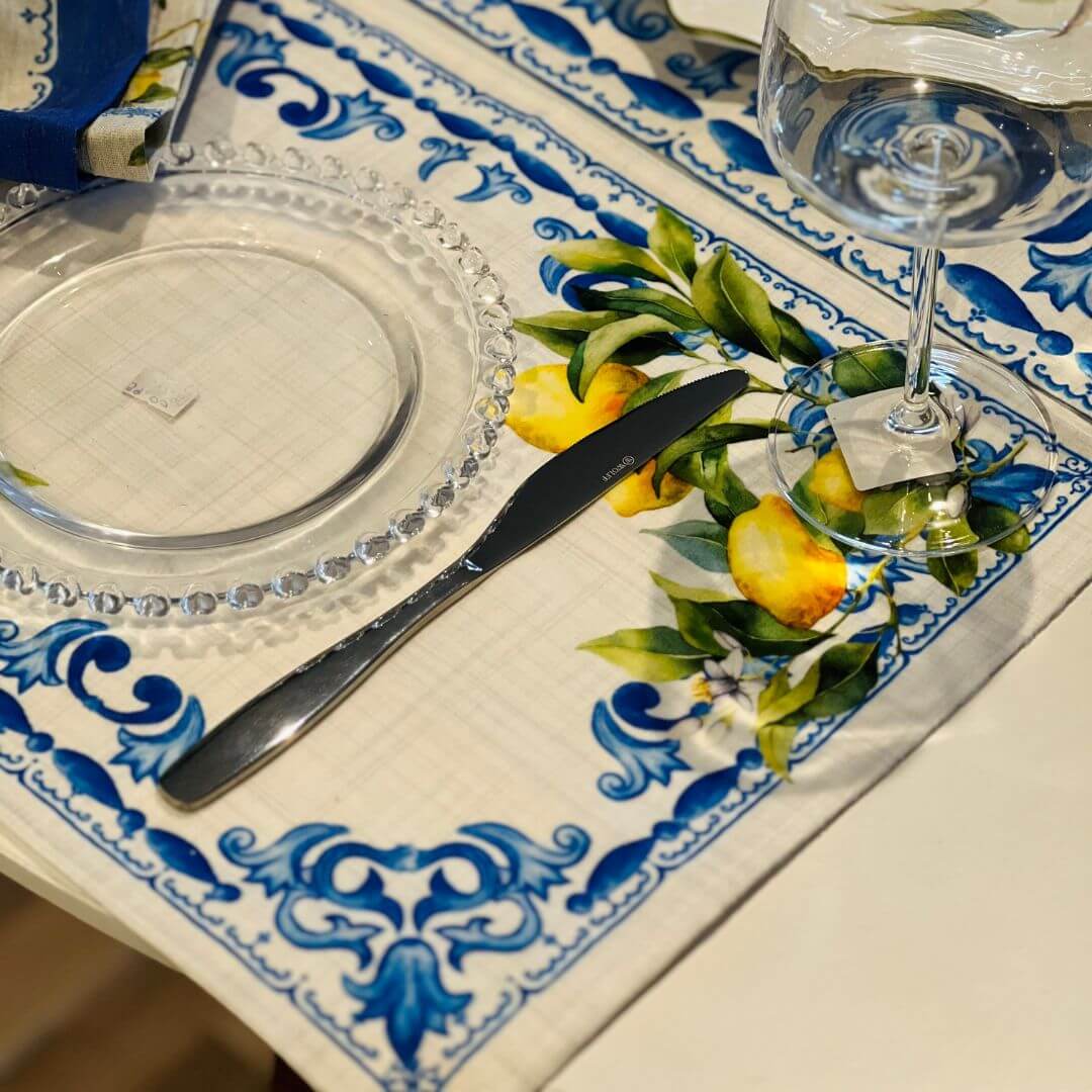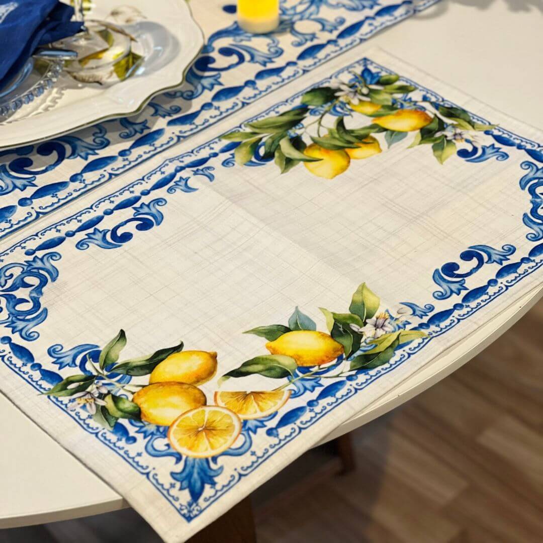 Jogo americano com estampa de limão siciliano, composto por 2 peças ideais para trazer frescor e alegria à sua mesa posta. Com design vibrante e funcional, protege a superfície e embeleza as refeições com um toque temático e acolhedor.