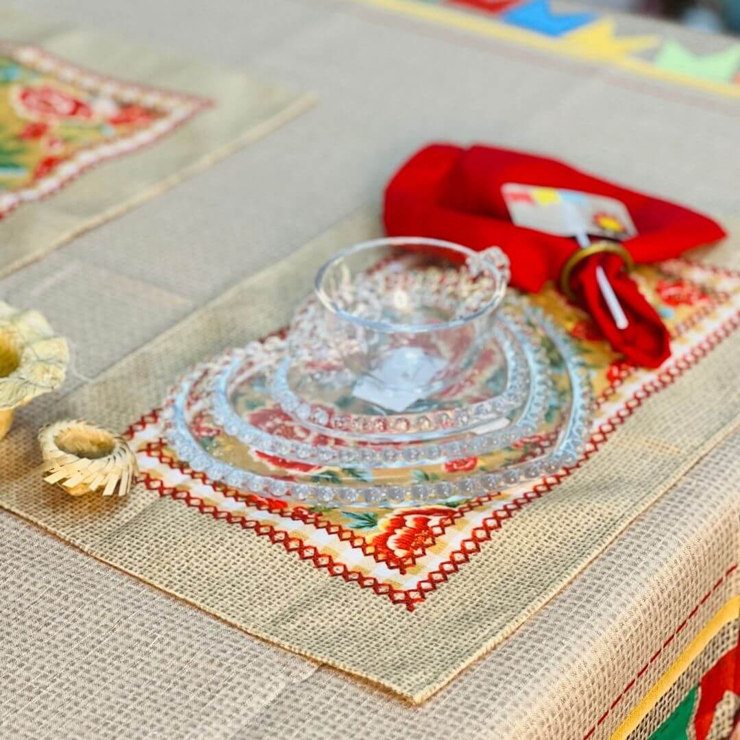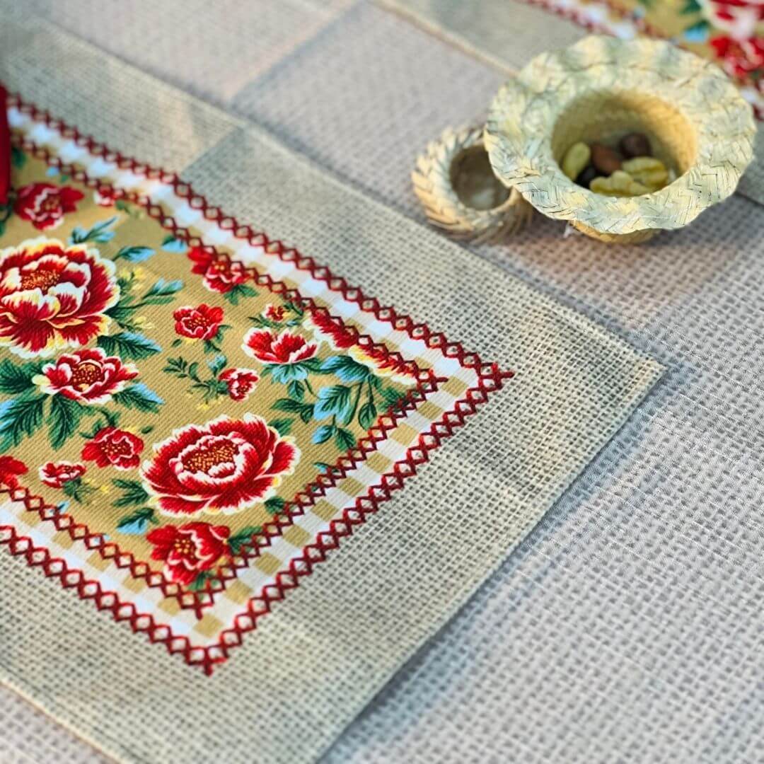 Perfeito para dar um toque temático e acolhedor à sua mesa, o Jogo Americano São João traz uma estampa charmosa que remete às festividades juninas. Ideal para criar composições alegres e cheias de personalidade, ele combina beleza e praticidade no dia a dia ou em ocasiões especiais.
