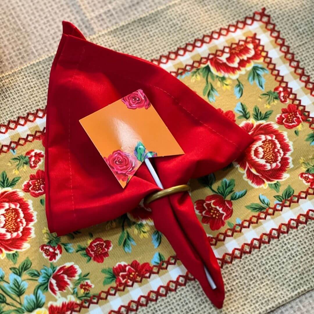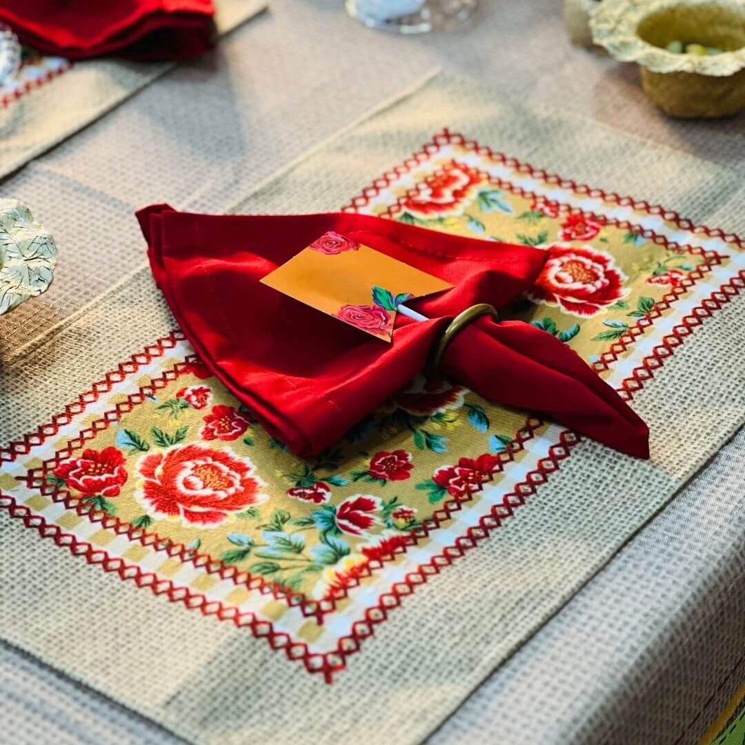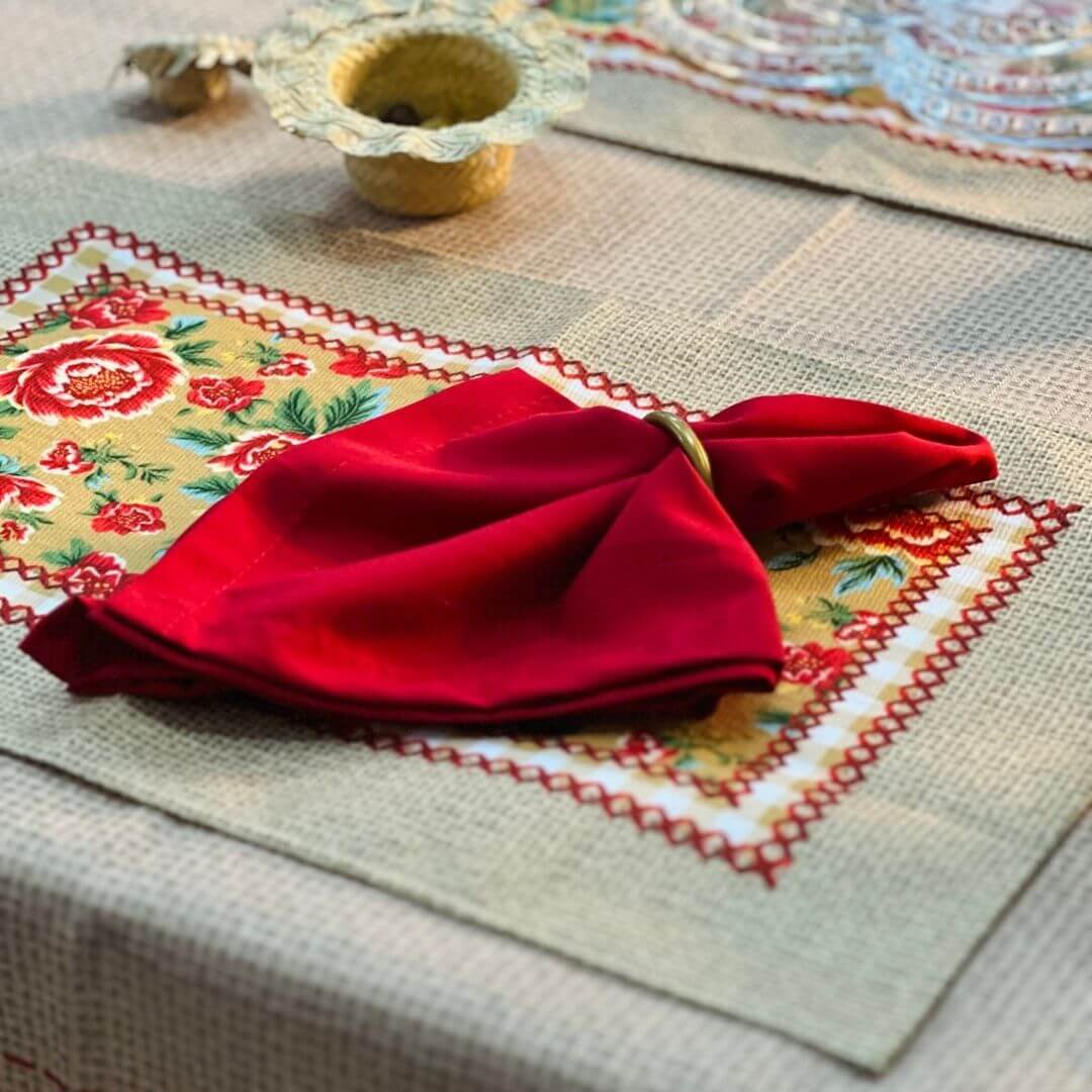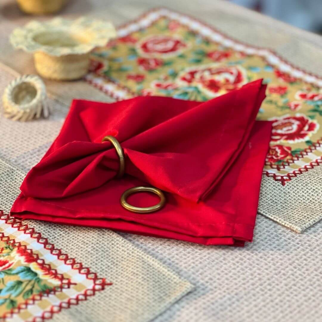Adicione charme e elegância à sua mesa posta com este kit de guardanapos em tricoline liso vermelho. Ideal para ocasiões especiais ou para transformar suas refeições do dia a dia em momentos mais acolhedores. Acompanha duas argolas decorativas que completam o visual com sofisticação.