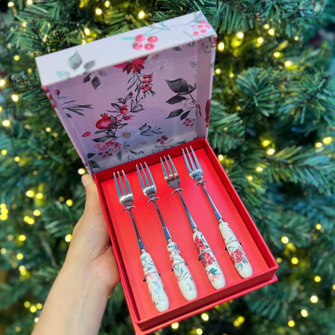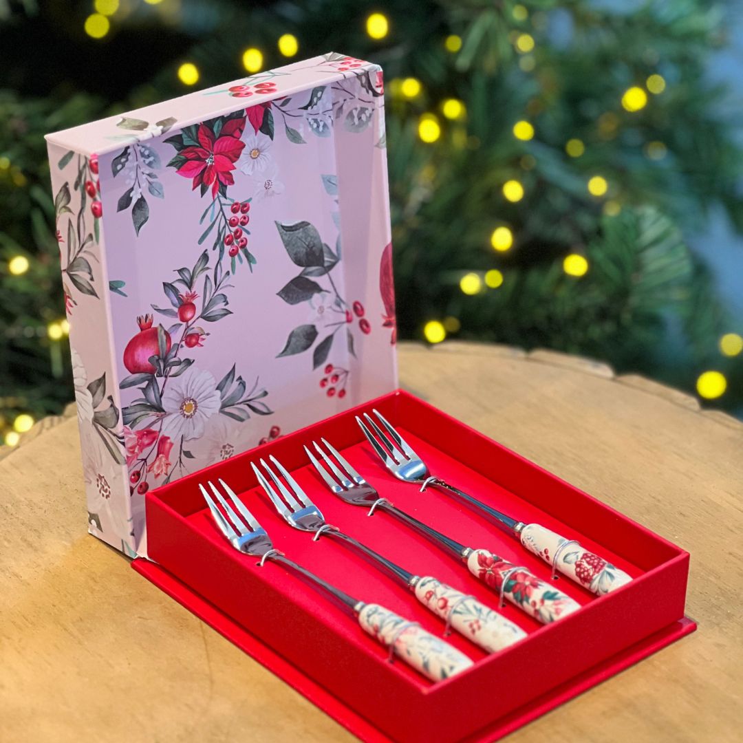 Leve mais charme e delicadeza à sua mesa com este lindo kit de 4 garfos estampados. Ideal para servir sobremesas com estilo, cada garfo possui um cabo decorado que traz um toque especial à sua rotina ou ocasiões especiais.