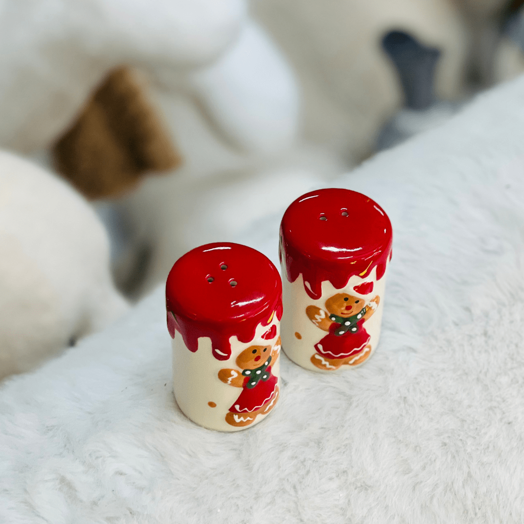 Kit Saleiro e Pimenteiro Natalinos Gingerbread de Cerâmica 8cm