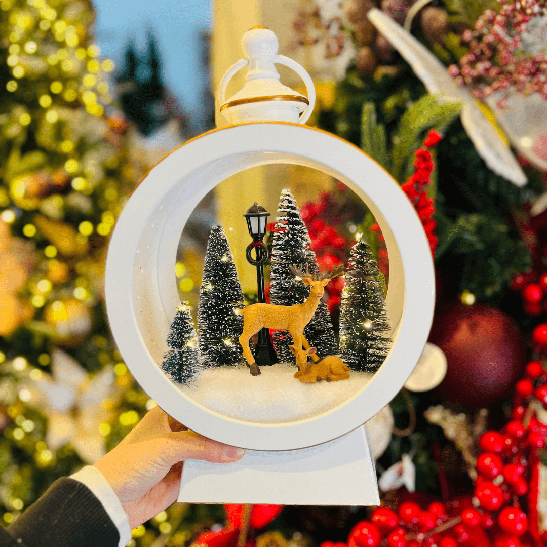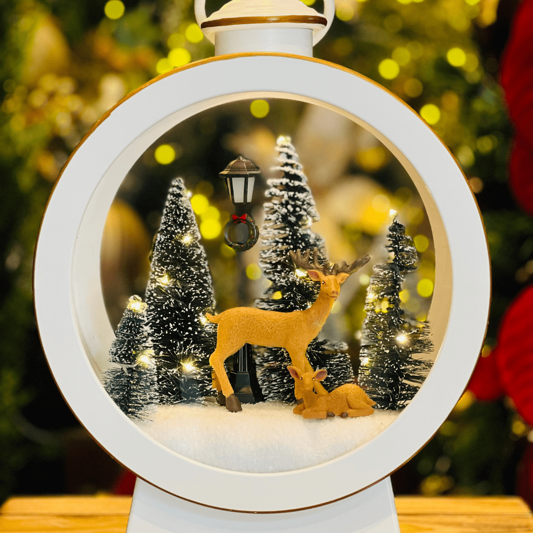 Lamparina Natalina Renas na Floresta Com Led 23x11x33,5cm