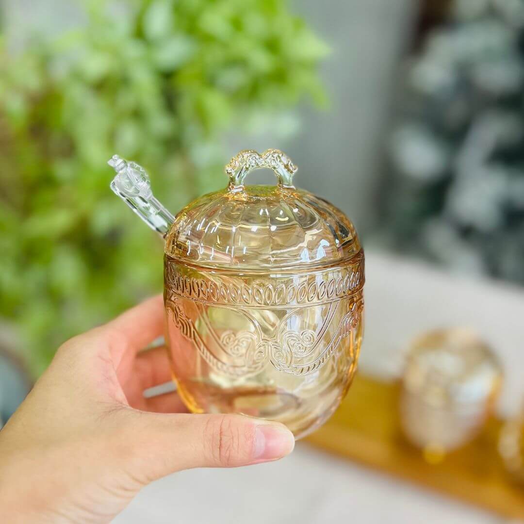 Meleira com Colher e Tampa Imperial Âmbar Metalizado – 240 ml