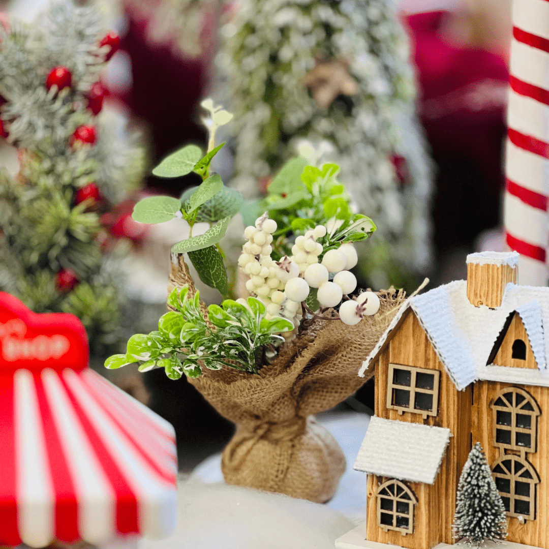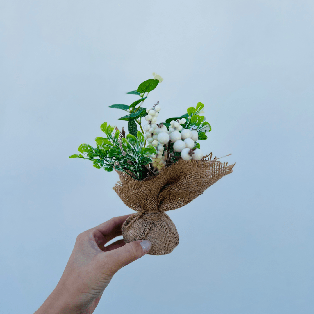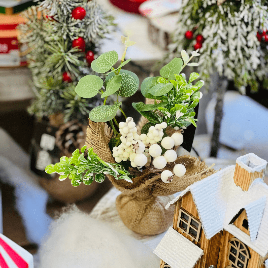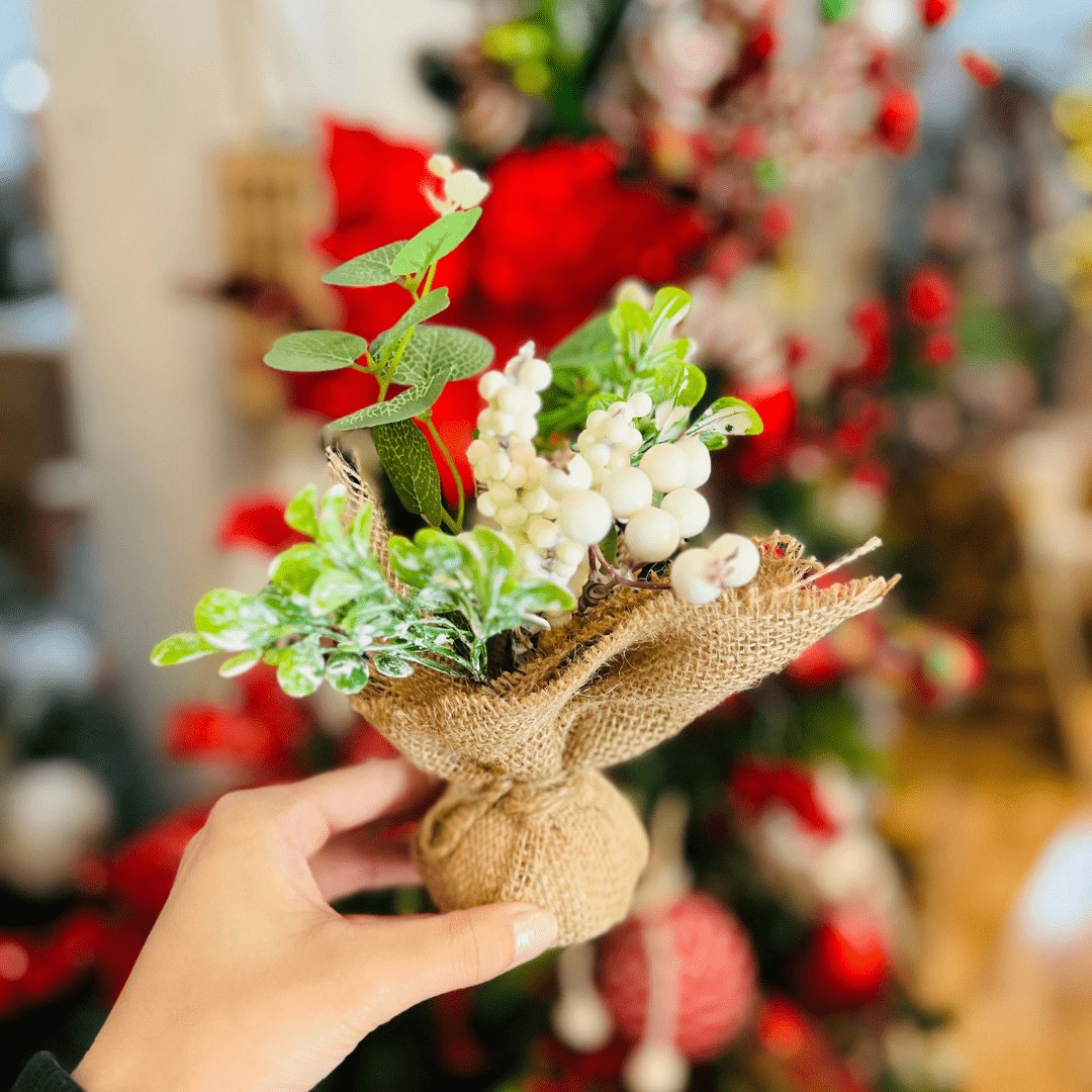A Mini Árvore Natalina Berries Brancas 25cm é uma peça delicada e elegante, perfeita para compor pequenos espaços com o encanto do Natal. Decorada com pequenas berries brancas que lembram flocos de neve, ela adiciona um toque suave e sofisticado à decoração de mesas, aparadores ou escritórios.