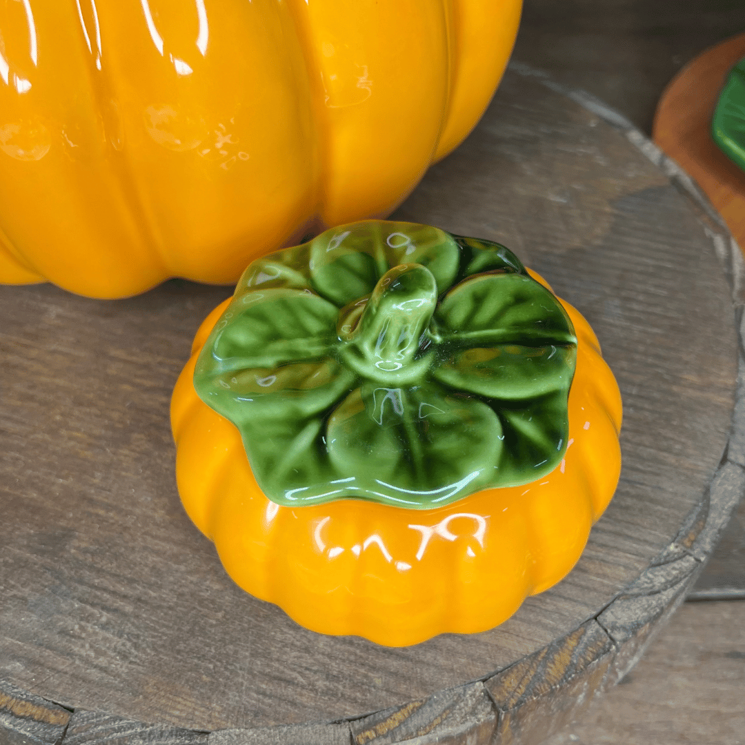 A Mini Moranga com Tampa de Cerâmica de 10cm é uma peça encantadora e versátil, perfeita para adicionar um toque de charme e originalidade à decoração de qualquer ambiente ou à apresentação da mesa. Este item não só é esteticamente atraente, mas também funcional, podendo ser utilizado de diversas maneiras, desde um recipiente para servir pequenas porções, condimentos ou até mesmo como um objeto decorativo. Com seu design inspirado na moranga, esta peça captura a essência rústica e a beleza natural das abóboras, apresentando uma riqueza de detalhes na modelagem e na pintura. A cor vibrante e as texturas realistas conferem a esta mini moranga uma aparência autêntica e acolhedora, tornando-a um ponto de destaque onde quer que seja colocada.