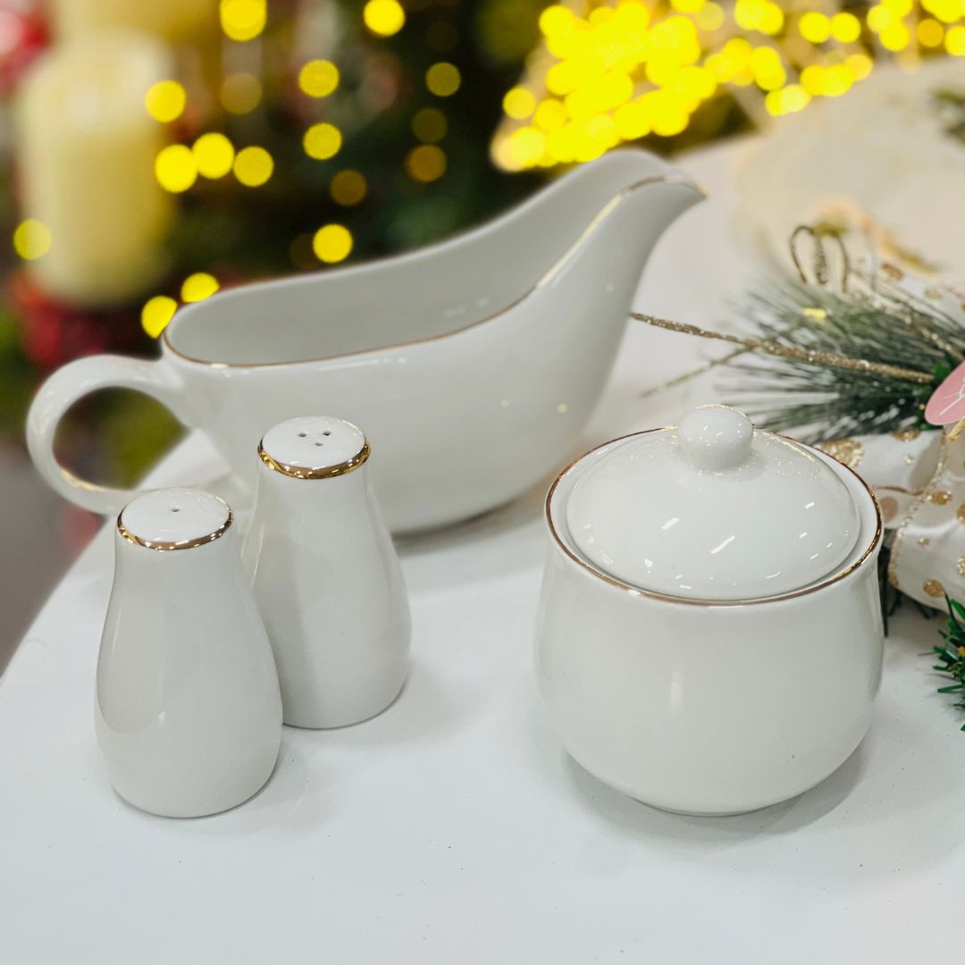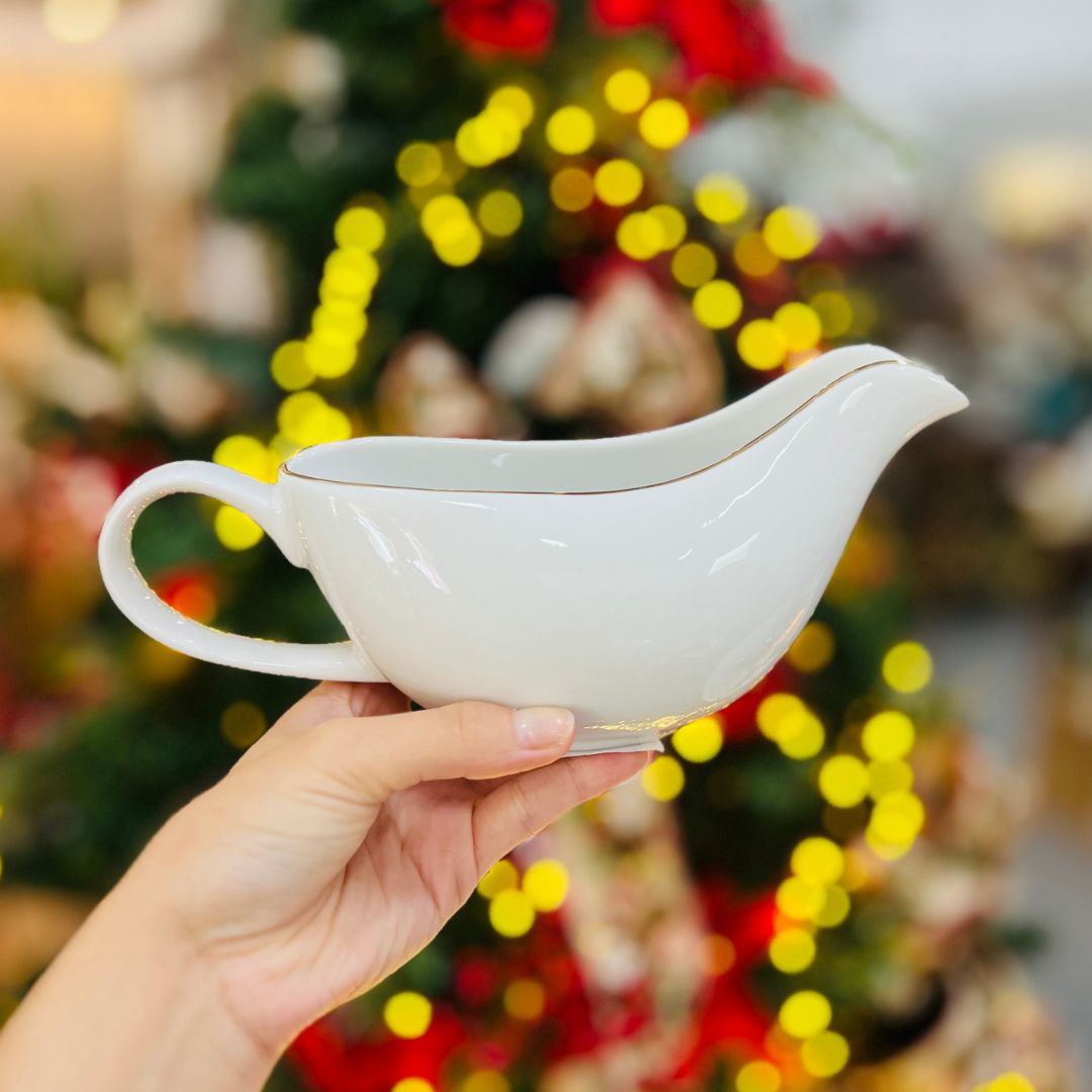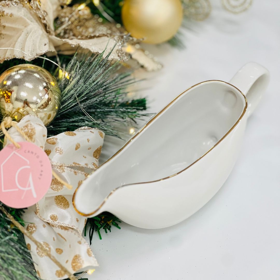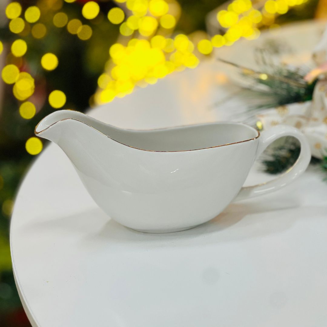 A Molheira Branca Com Borda Dourada une funcionalidade e sofisticação, sendo perfeita para servir molhos com elegância em suas refeições. Seu acabamento branco impecável e a borda dourada proporcionam um toque refinado à mesa, ideal para ocasiões especiais ou para uso diário com estilo.