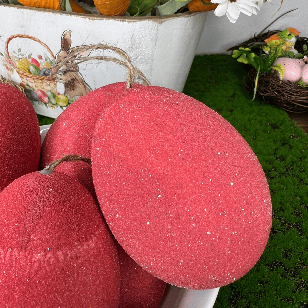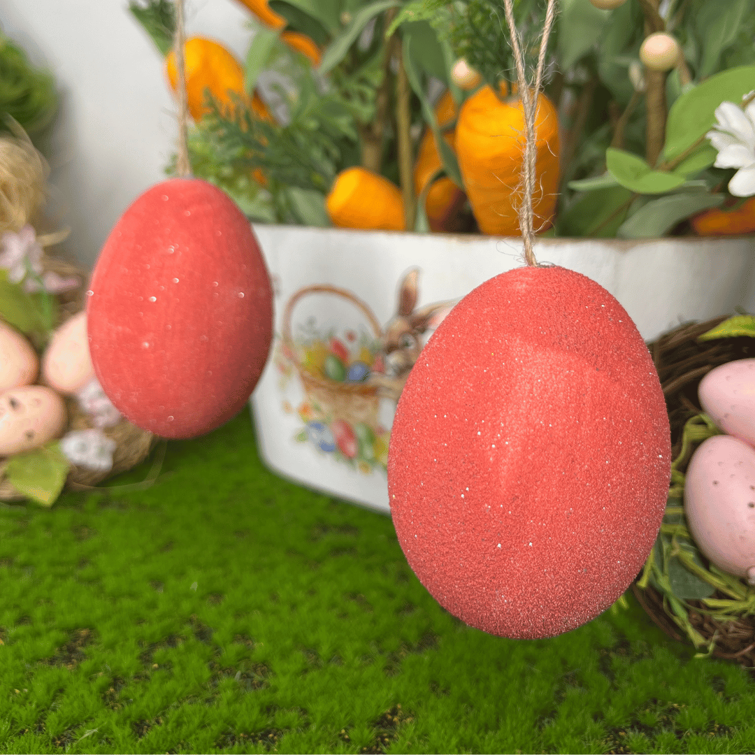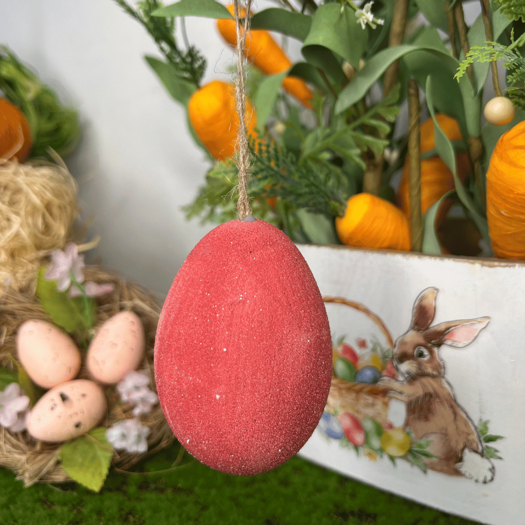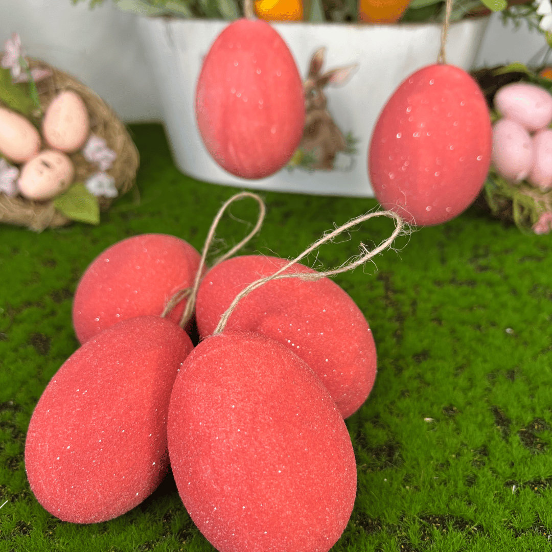 Ovos de Páscoa Para Pendurar Vermelho Com 6 Unidades 9cm
