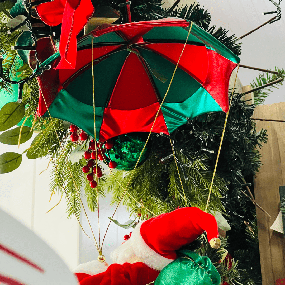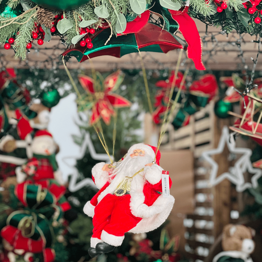 O Papai Noel no Paraquedas é um enfeite divertido e encantador que traz movimento e alegria para a sua decoração natalina. Com detalhes bem trabalhados e cores vibrantes, ele é perfeito para pendurar em ambientes internos e dar um toque criativo e especial ao Natal.
