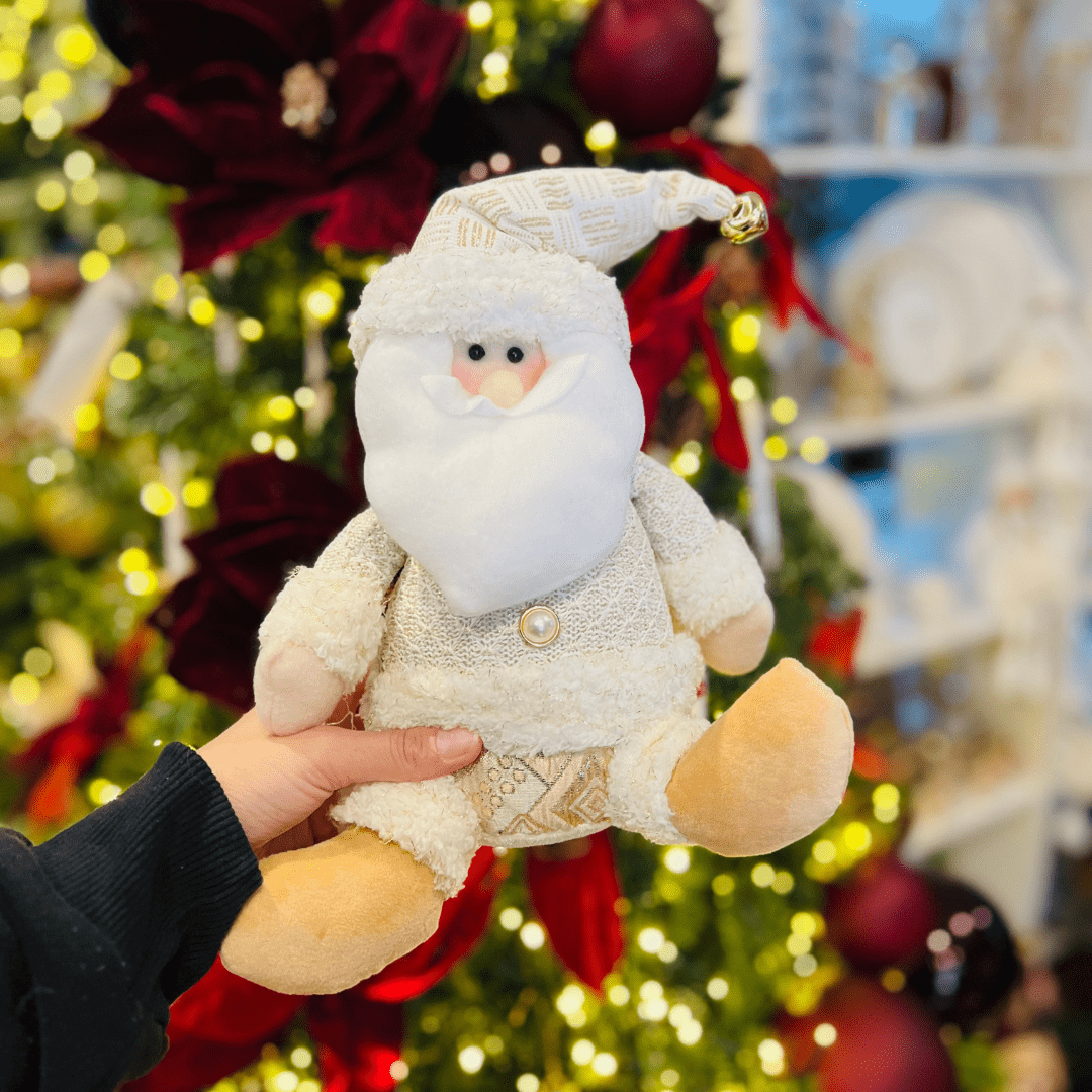 Adicione sofisticação e charme à sua decoração natalina com este Papai Noel sentado na cor champanhe. Produzido com detalhes delicados, ele transmite elegância e o verdadeiro espírito do Natal, sendo ideal para mesas, aparadores, estantes ou como peça de destaque ao lado da árvore.