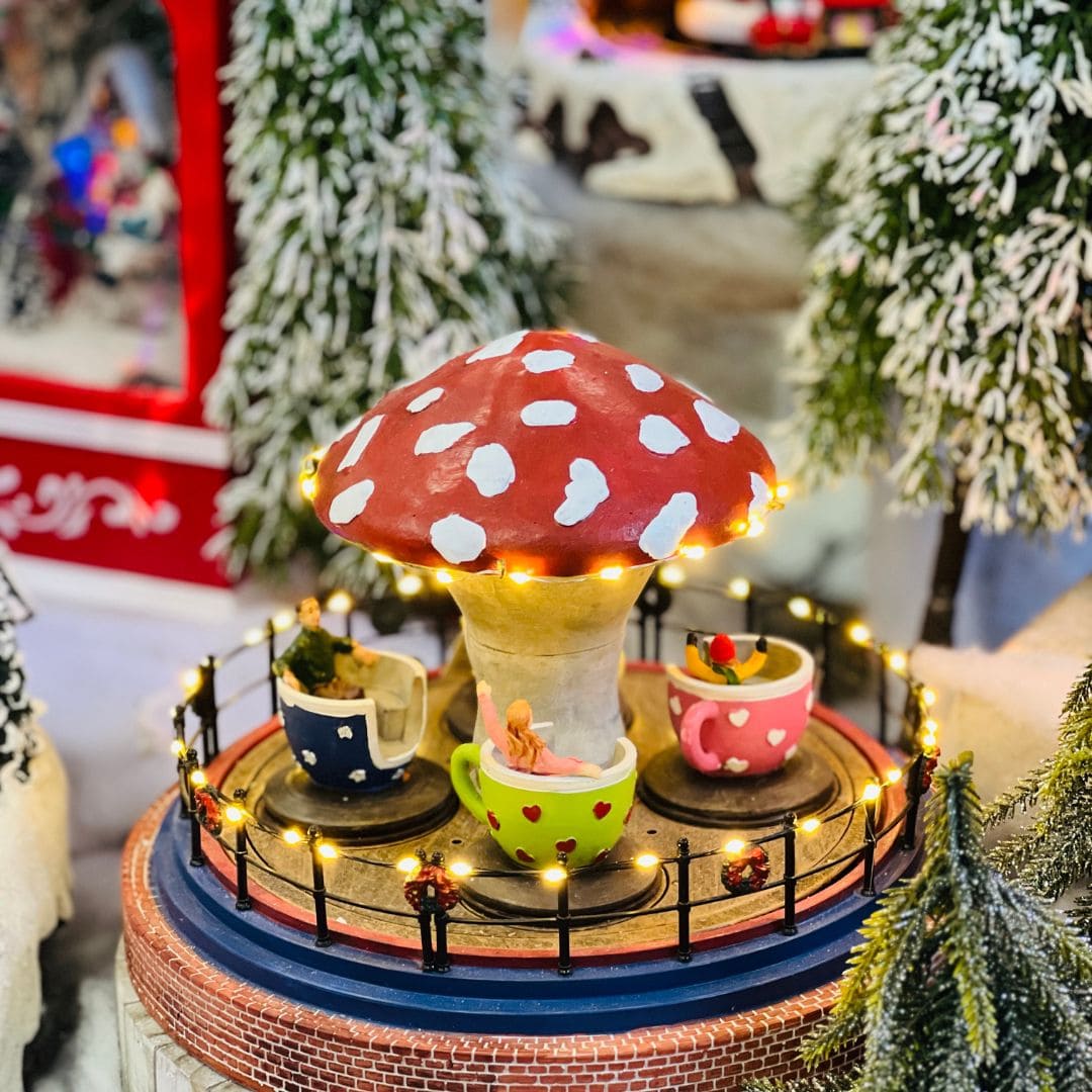 Parque Natal Cogumelo Com Led, Som e Movimento Bivolt 19x26x26cm