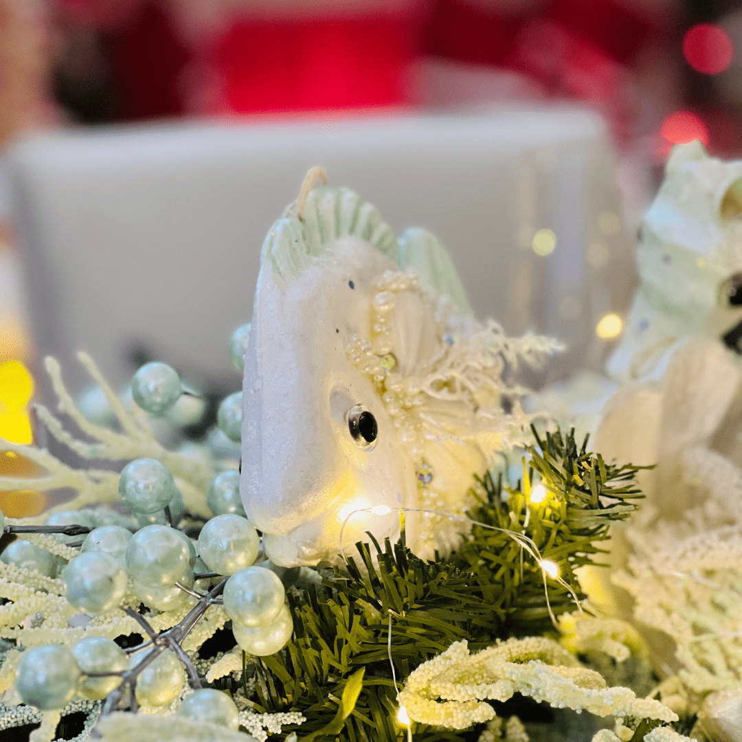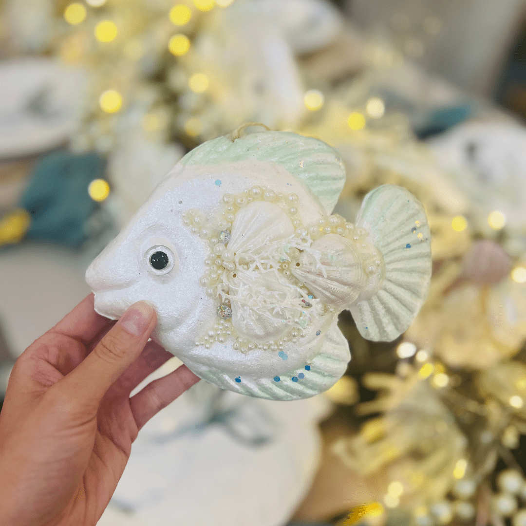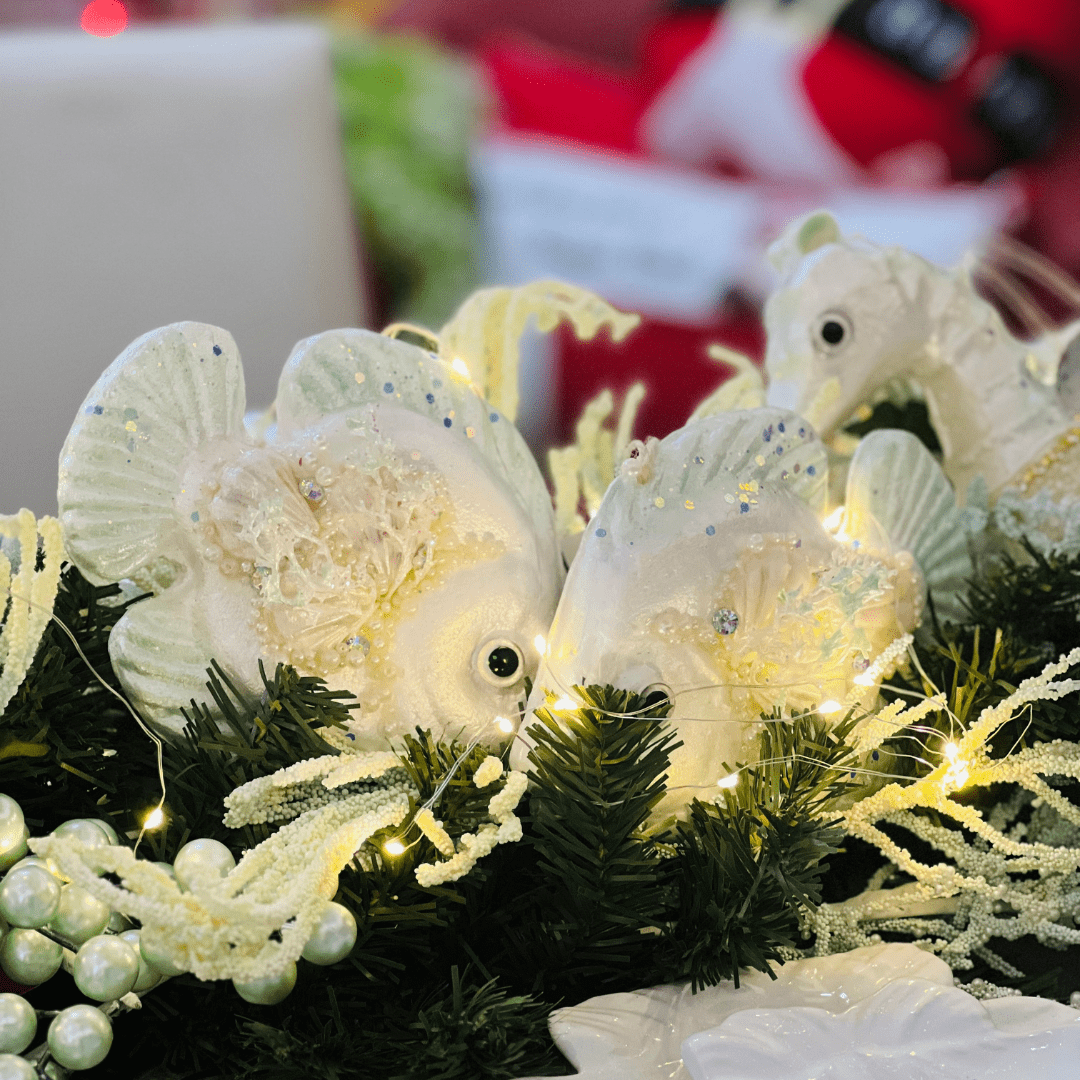 O Peixe Decorativo Natal Náutico 18x14x6cm é uma peça temática que une o charme do estilo marítimo ao espírito natalino. Ideal para compor arranjos, árvores ou enfeites de mesa, traz um toque original e delicado à decoração, valorizando qualquer espaço com detalhes náuticos.
