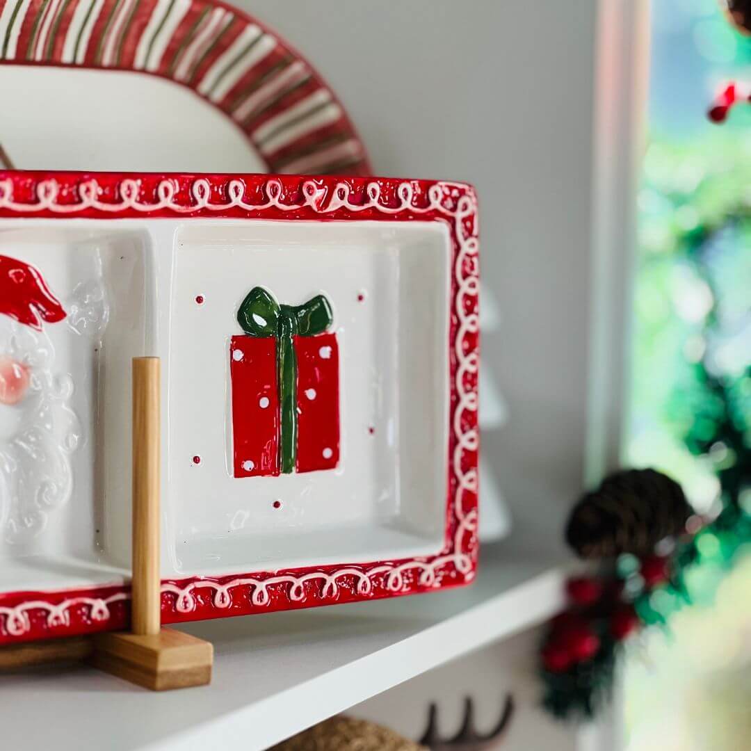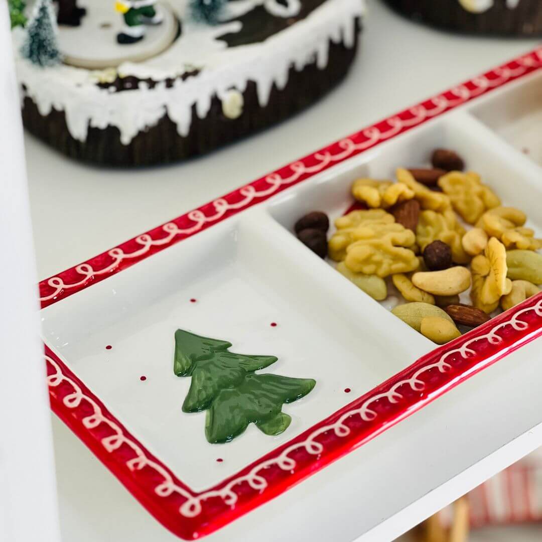 A Petisqueira Natalina Vermelha e Branca é perfeita para servir com charme e estilo durante as festas. Com design temático e cores tradicionais do Natal, ela adiciona um toque alegre e elegante à mesa, ideal para petiscos, doces ou aperitivos.