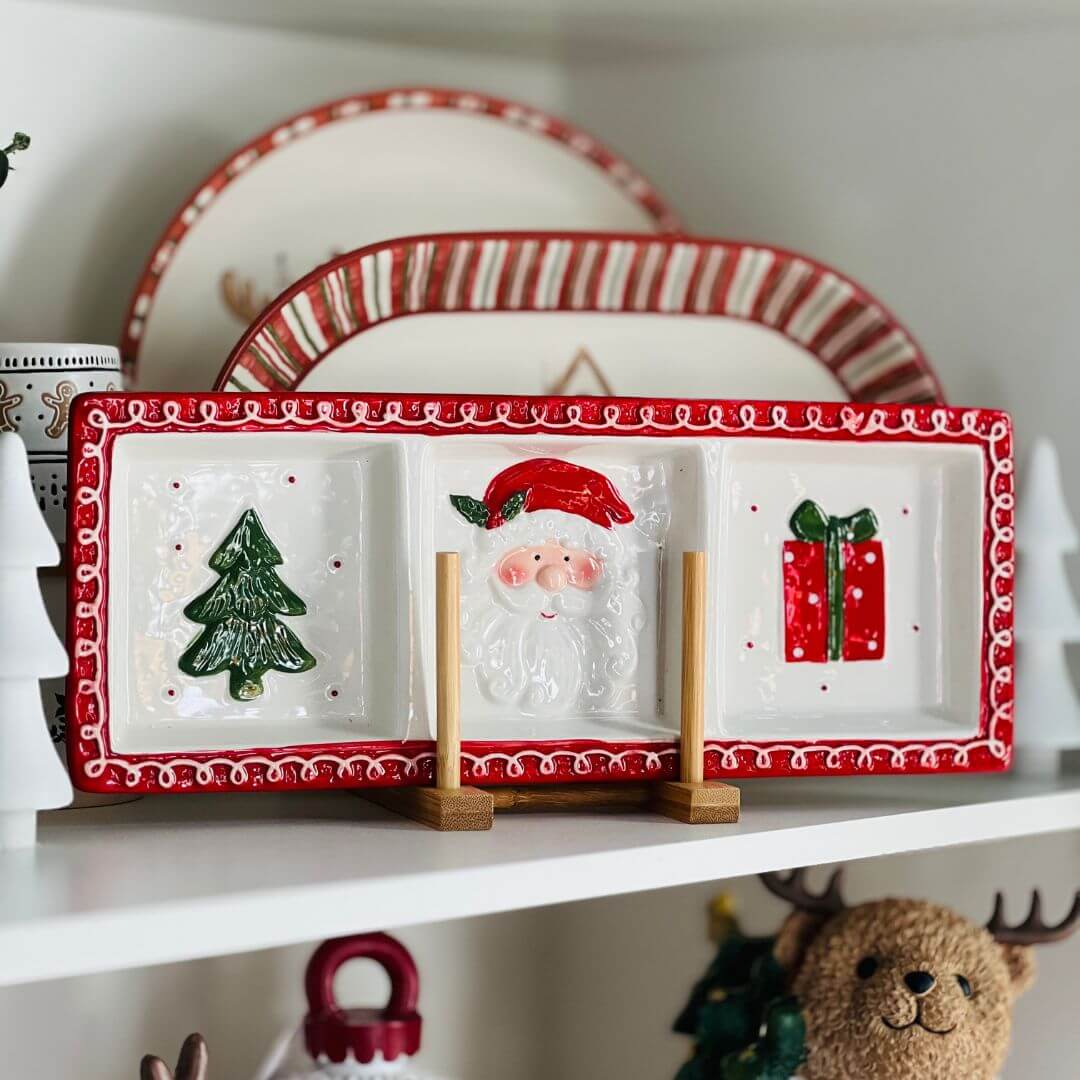Petisqueira Natalina Vermelha e Branca – 38 cm x 15 cm x 3,5 cm