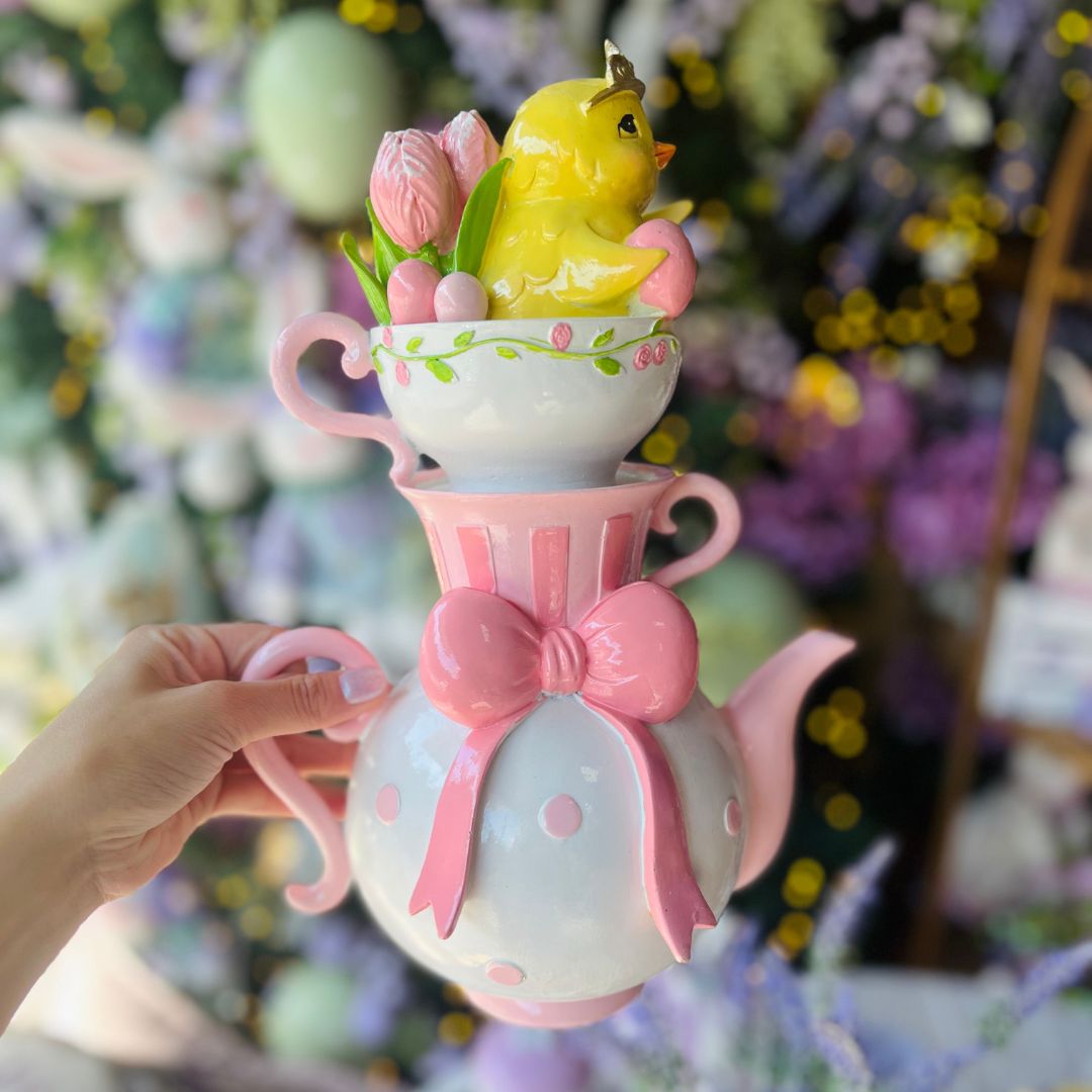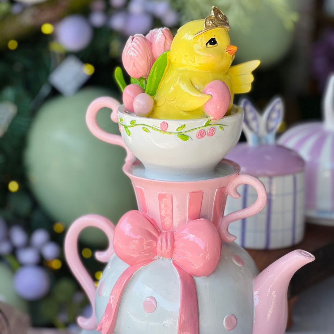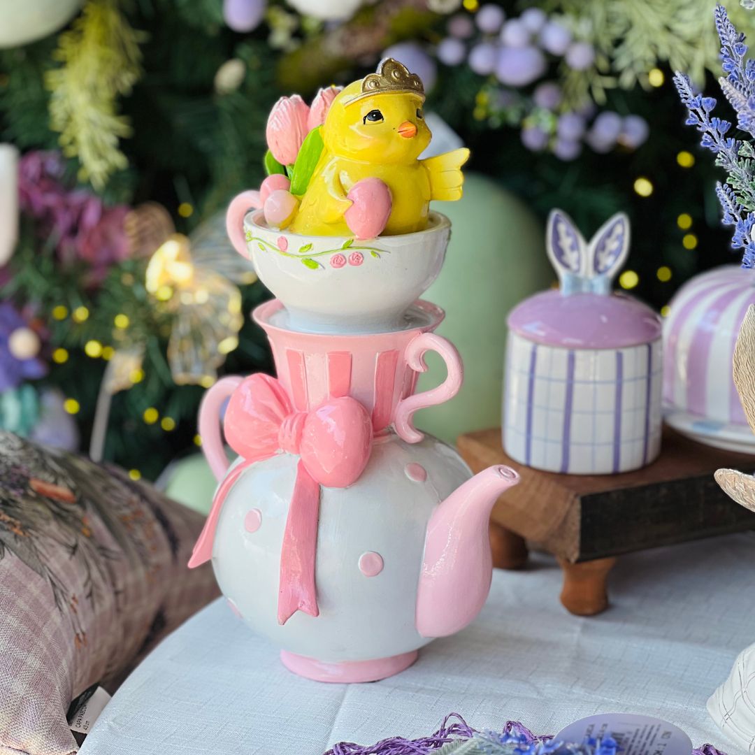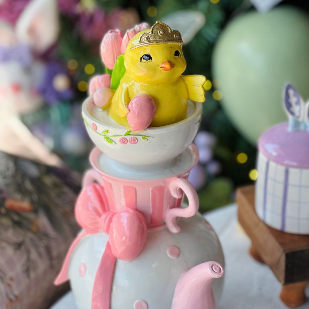 O Pintinho no Bule e Xícaras é uma peça decorativa encantadora e cheia de delicadeza, perfeita para compor ambientes com um toque lúdico e temático. Produzido em resina de alta qualidade, possui acabamento detalhado e pintura cuidadosamente aplicada, destacando o pintinho acomodado no bule junto às xícaras, criando uma composição charmosa e criativa. Ideal para mesas, aparadores, vitrines ou decorações de Páscoa. Com 33cm de altura, é uma peça marcante que valoriza a decoração.