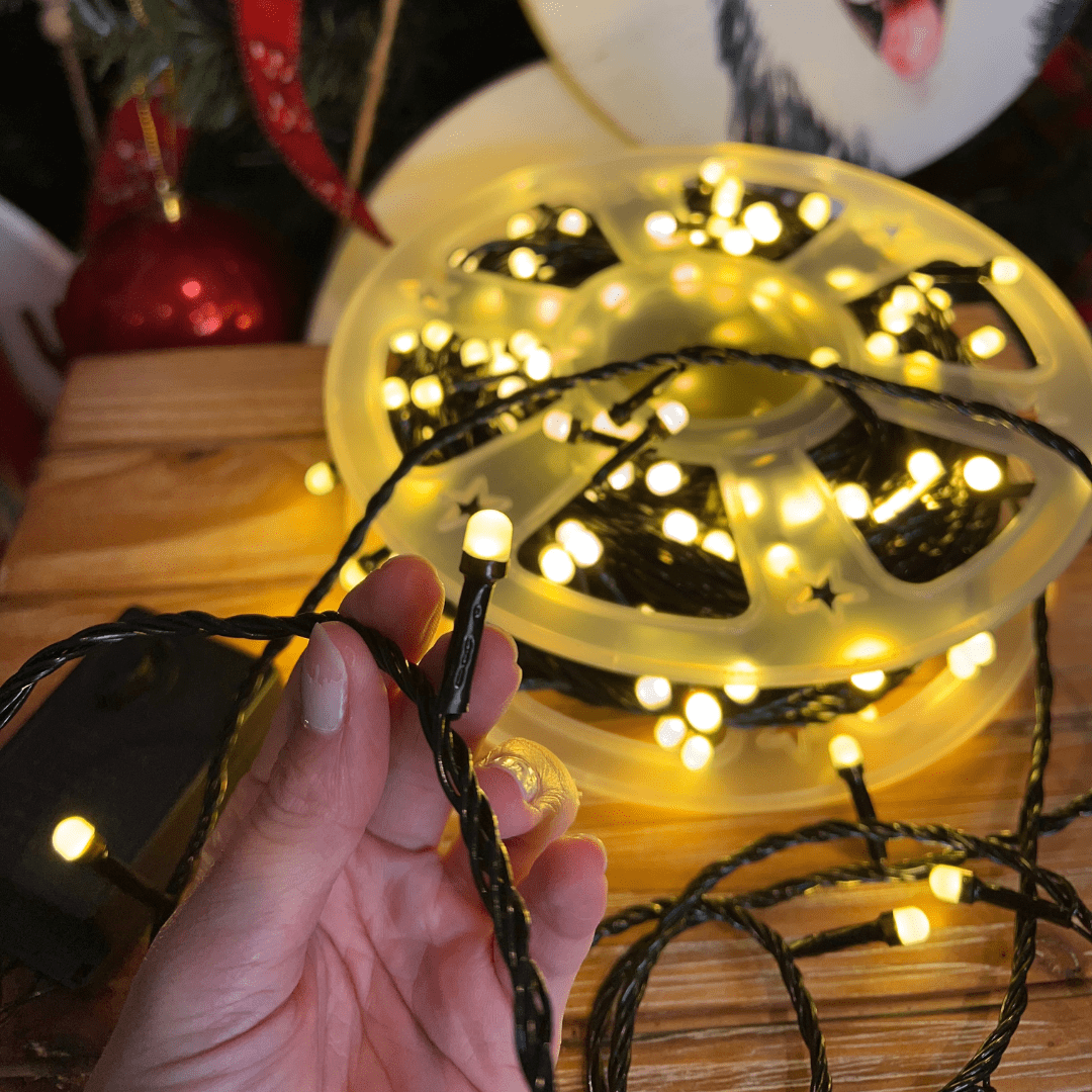 O Pisca-pisca Fio Verde Led Branco Quente Com Funções 50m 240 Leds 220v é ideal para iluminar e embelezar a decoração natalina, criando um ambiente aconchegante e festivo. Seu fio verde é discreto, integrando-se facilmente à folhagem da árvore de Natal, enquanto as luzes em tom branco quente proporcionam um brilho suave e elegante. Com diversas funções de piscar, permite ajustar o efeito luminoso conforme o estilo desejado.