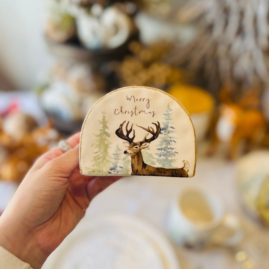 O Porta-Guardanapo Alce é um acessório funcional e decorativo que traz charme e delicadeza para a mesa posta. Com design criativo inspirado no alce, ele adiciona um toque especial e temático, sendo ideal para ocasiões festivas como o Natal ou até mesmo para o uso no dia a dia com estilo. Compacto e prático, mantém os guardanapos organizados enquanto embeleza a decoração. Produzido em cerâmica de qualidade, combina durabilidade e elegância em uma única peça.