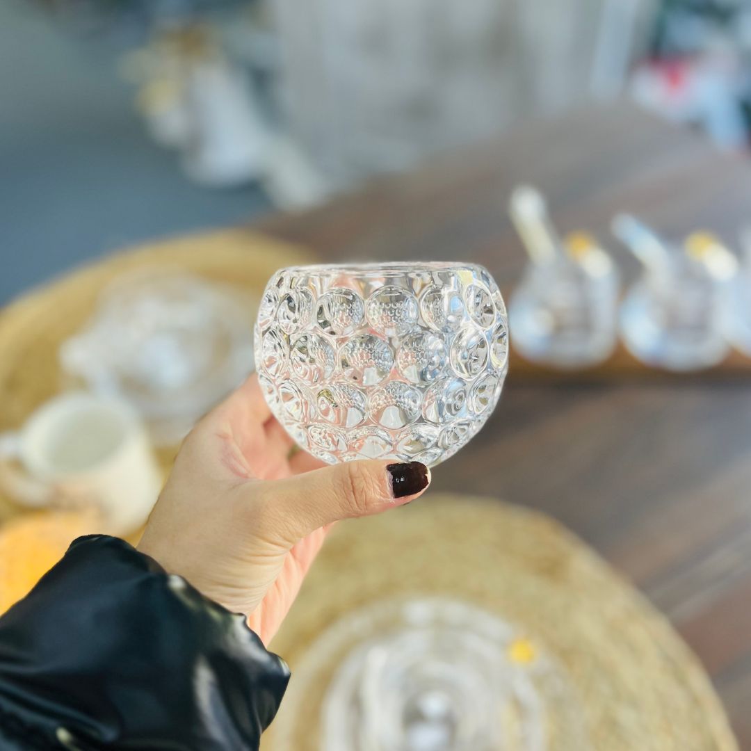 Elegante e diferenciado, o Porta Vela de Cristal Bolhas traz sofisticação à decoração com seu design moderno e acabamento em relevo que remete a bolhas de ar. Ideal para criar um ambiente acolhedor e cheio de charme, seja em jantares, salas de estar ou momentos especiais.