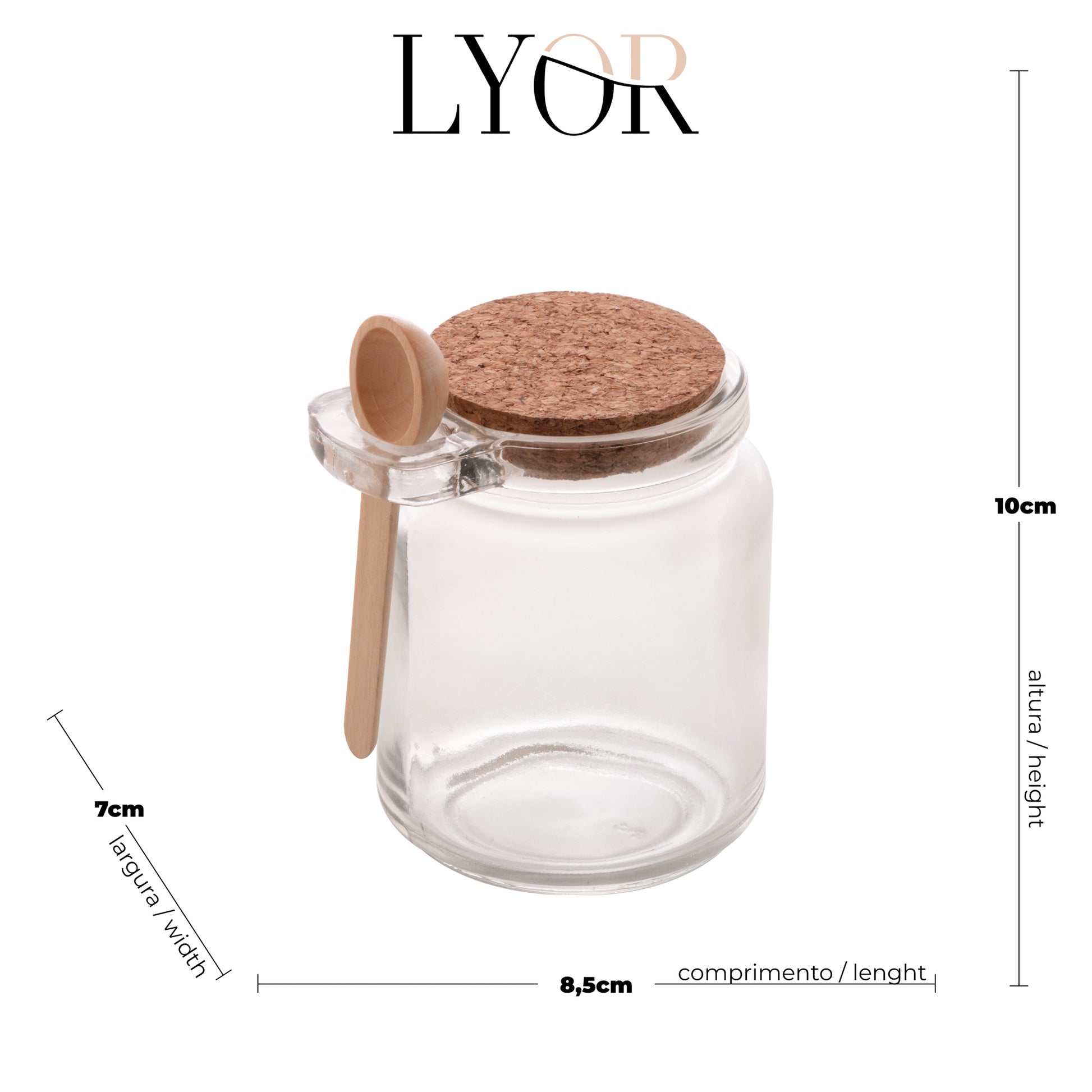 Pote de Vidro Com Colher Bambu e Tampa Rolha 240ml