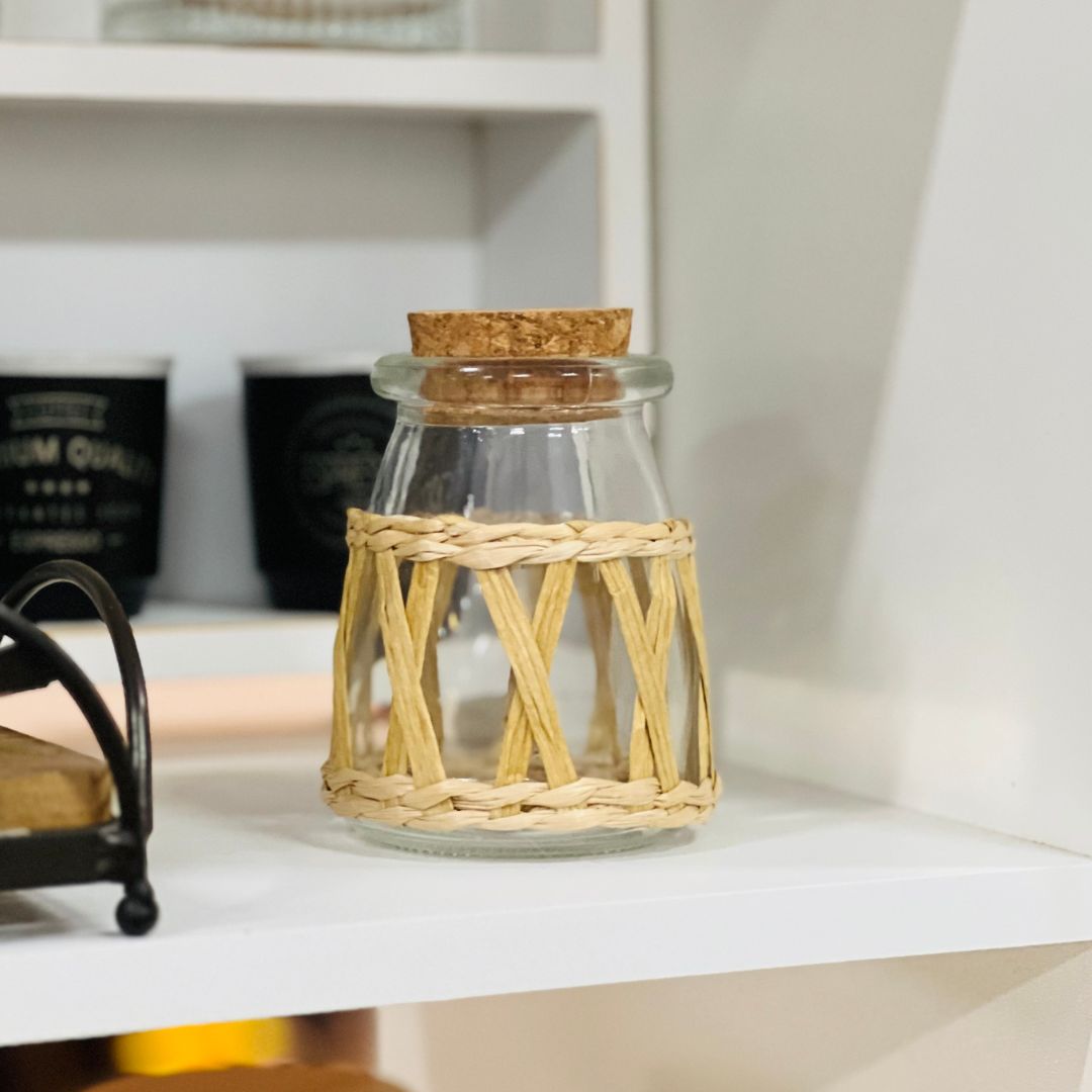 Pote de Vidro Com Fibra Natural e Tampa Rolha - 250ml