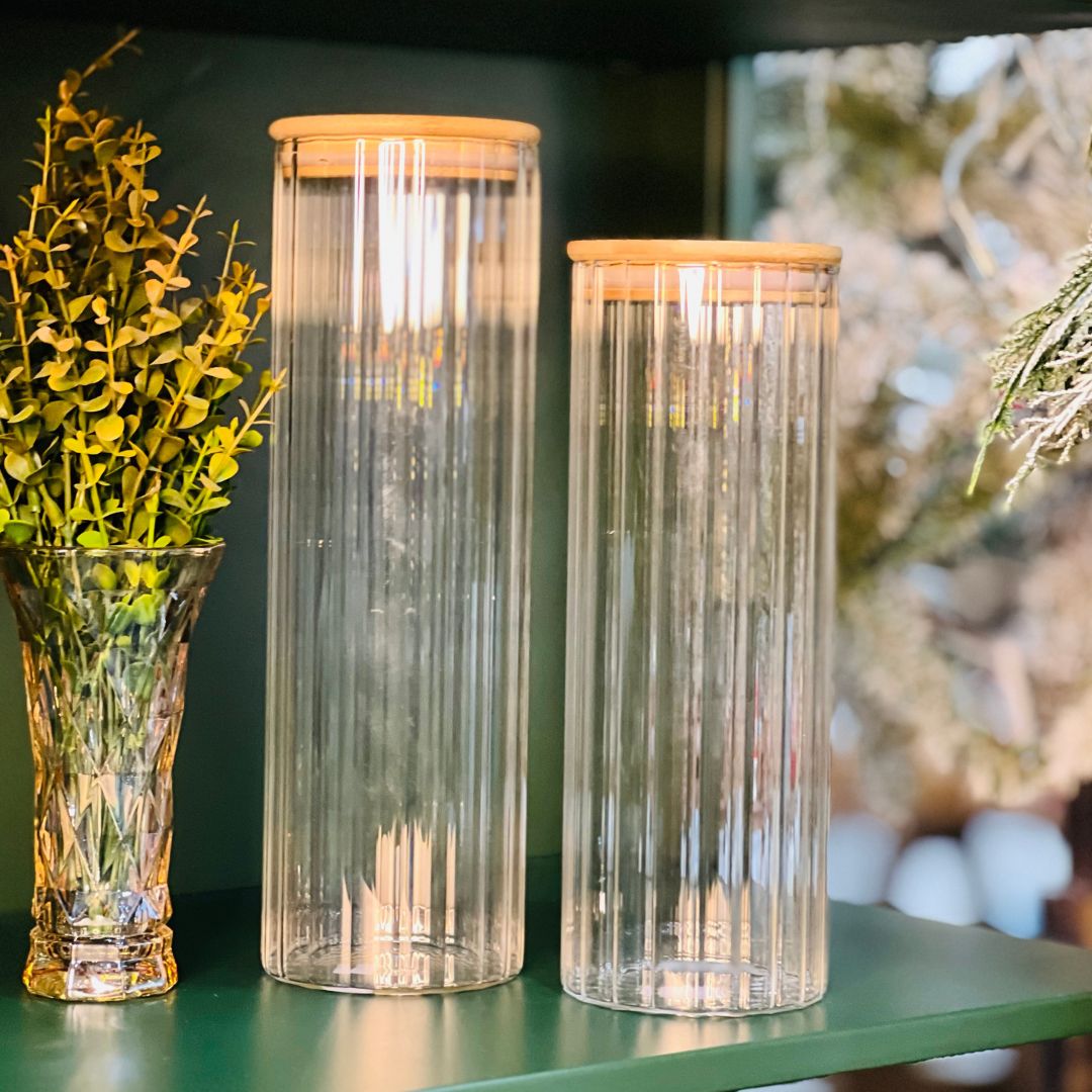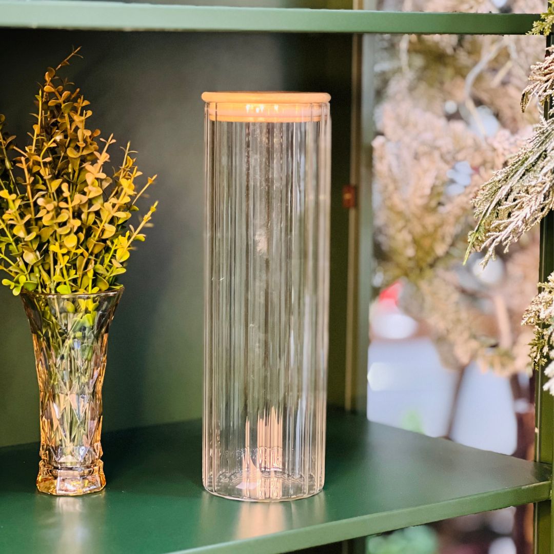 Pote De Vidro Com Tampa De Bambu - 1,3L