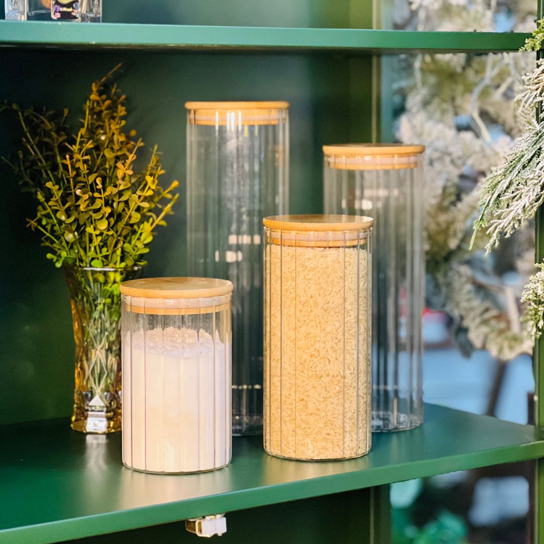 Pote de Vidro Com Tampa de Bambu - 800ml