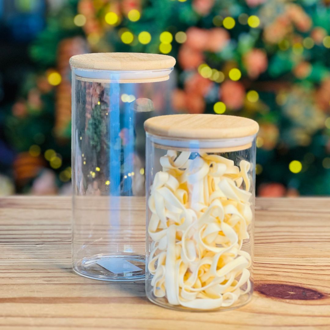 Pote de Vidro Com Tampa de Bambu - 800ml 10x10x16cm