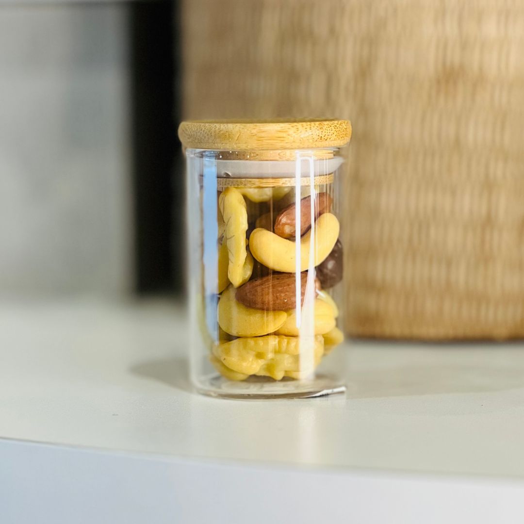 Este pote de vidro é ideal para armazenar pequenos itens de cozinha, como temperos, especiarias ou molhos. A tampa de bambu, além de funcional, traz um toque natural e moderno para sua cozinha, garantindo o armazenamento seguro dos alimentos.