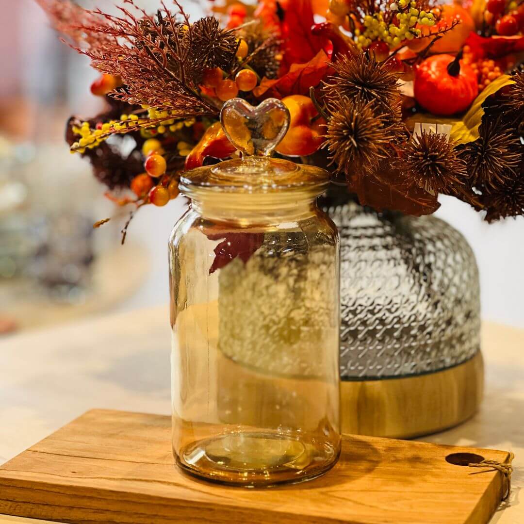 Adicione charme e elegância à sua cozinha ou decoração com este Pote de Vidro em formato de coração. Na tonalidade âmbar, ele traz um toque retrô e acolhedor ao ambiente. Ideal para armazenar biscoitos, grãos, doces ou simplesmente decorar com estilo. Seu design delicado combina funcionalidade e beleza em uma única peça.