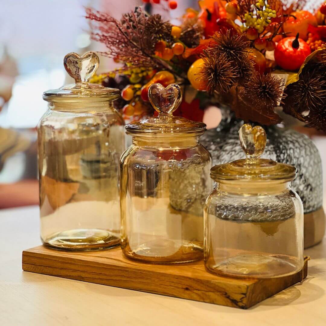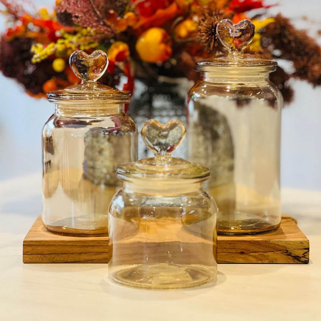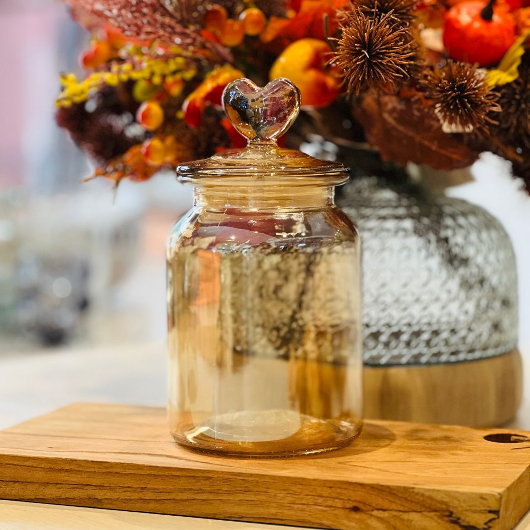Pote de Vidro Tampa Coração Ambar 1000ml