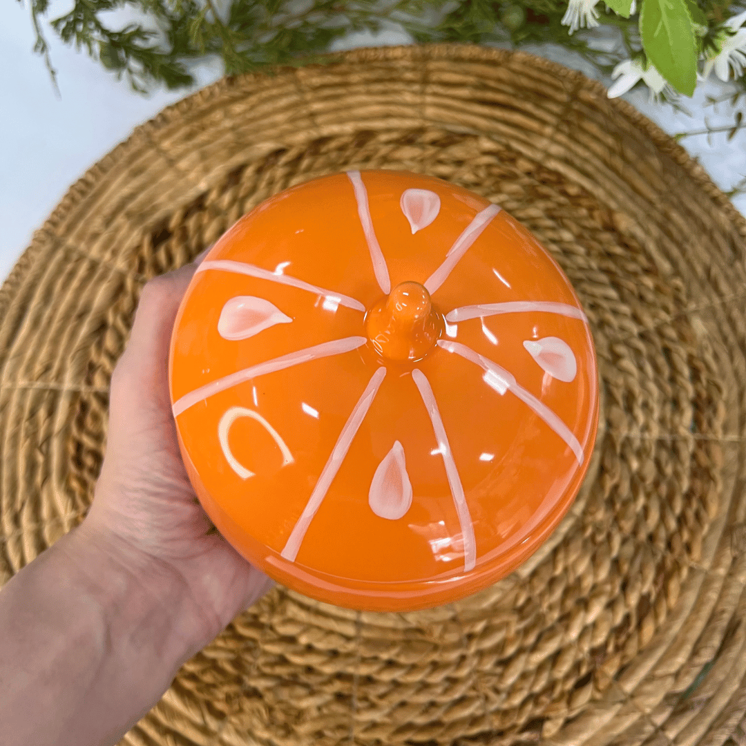Pote Laranja com Tampa Tutti-Frutti de Cerâmica 730ml – 15x13cm