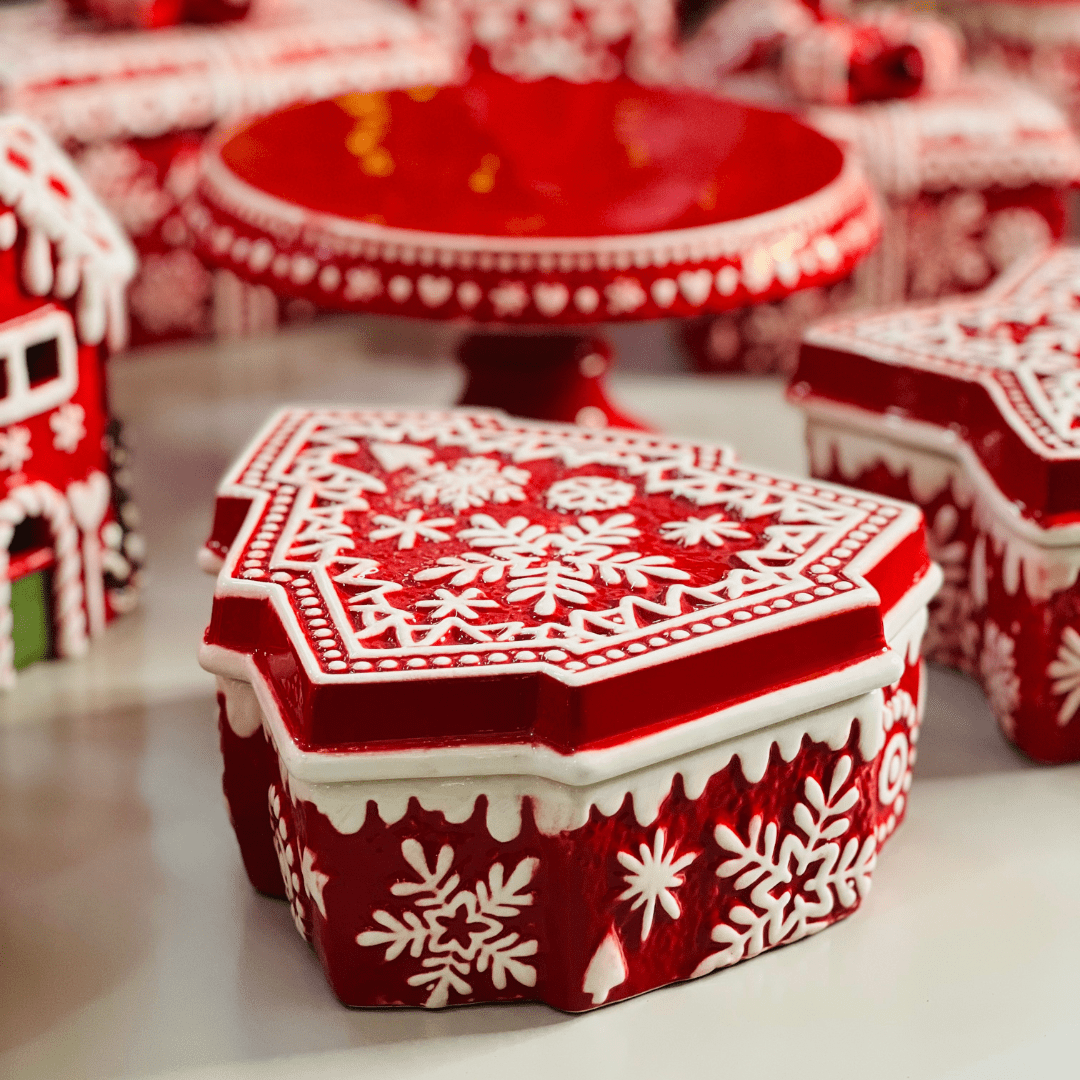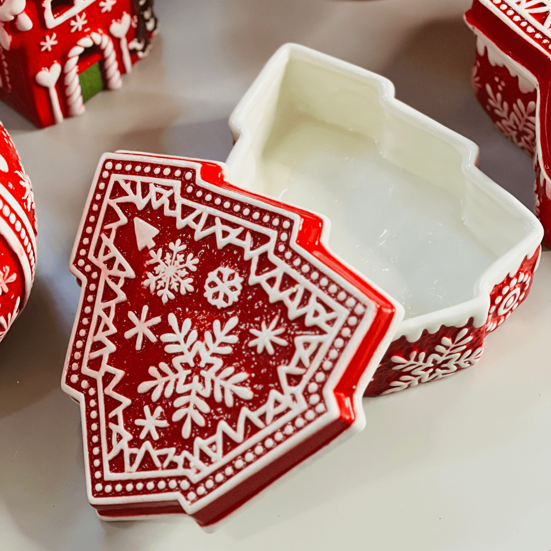O Pote Natalino Árvore Vermelho e Branco de Cerâmica 21x19x9cm é ideal para compor sua decoração natalina com elegância e charme. Seu design em formato de árvore e as cores tradicionais do Natal proporcionam um toque festivo, sendo perfeito para mesas, aparadores ou como peça decorativa em coleções temáticas.