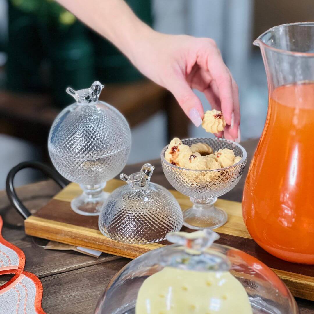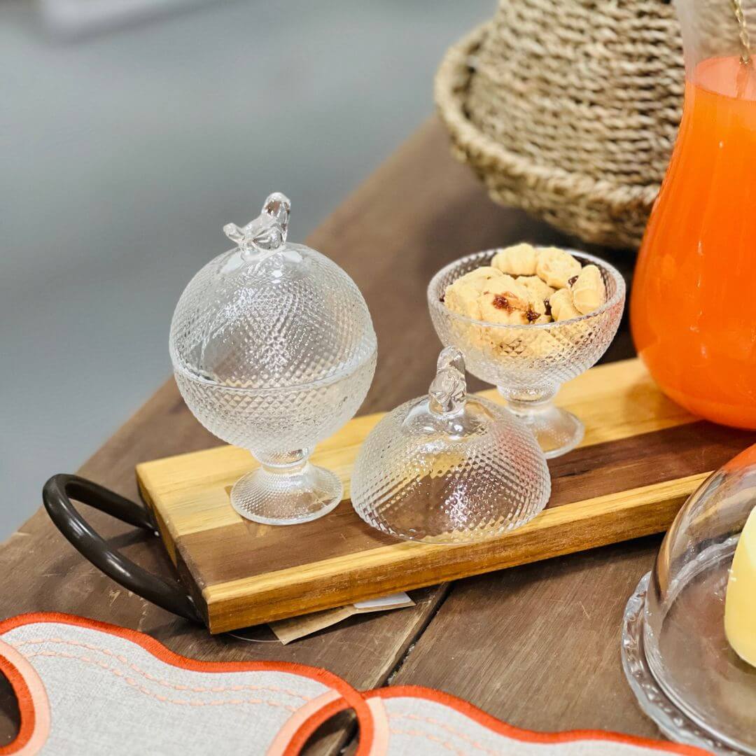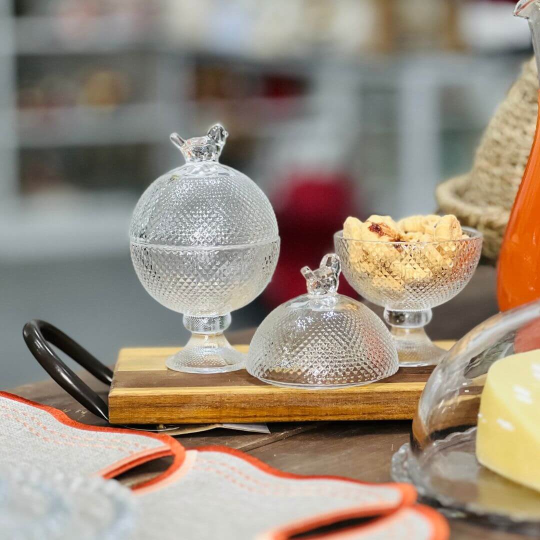 Elegante e delicado, o Potiche Bird com Pé é confeccionado em cristal de chumbo de alta qualidade e destaca-se pelo pingente de pássaro na tampa. Perfeito para armazenar doces, balas ou pequenos objetos com sofisticação, ele valoriza qualquer ambiente com seu brilho e acabamento refinado.