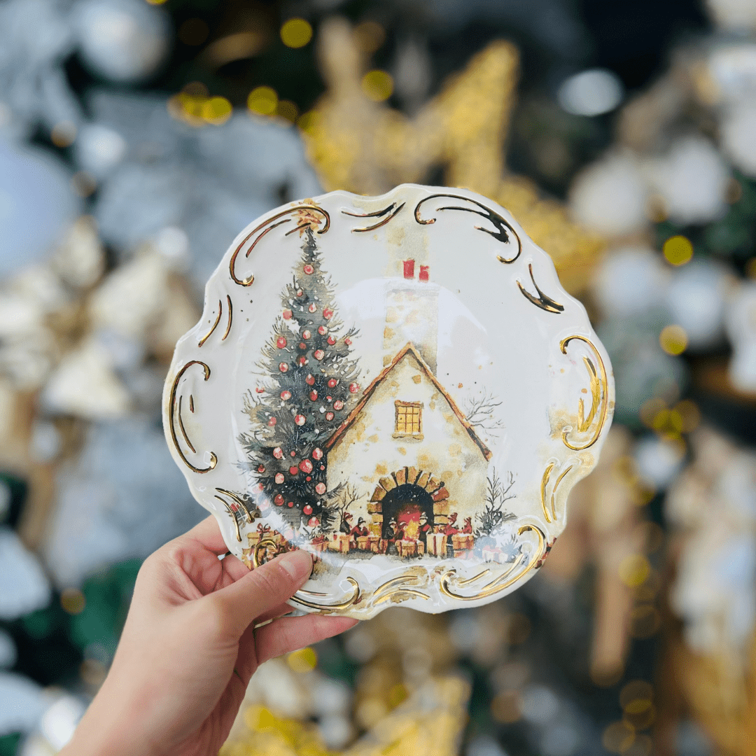 Prato de Sobremesa Noite de Neve de Cerâmica 20cm