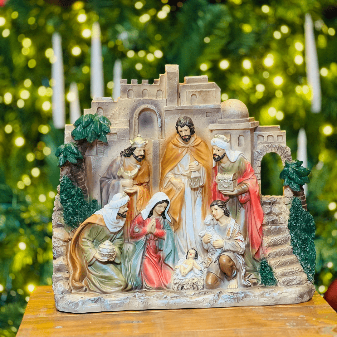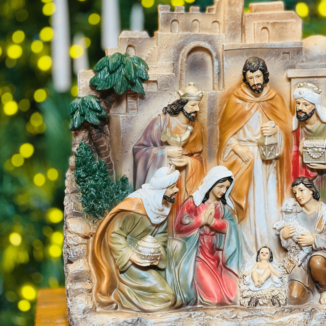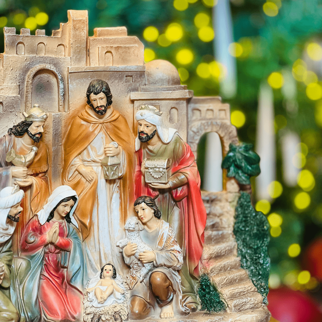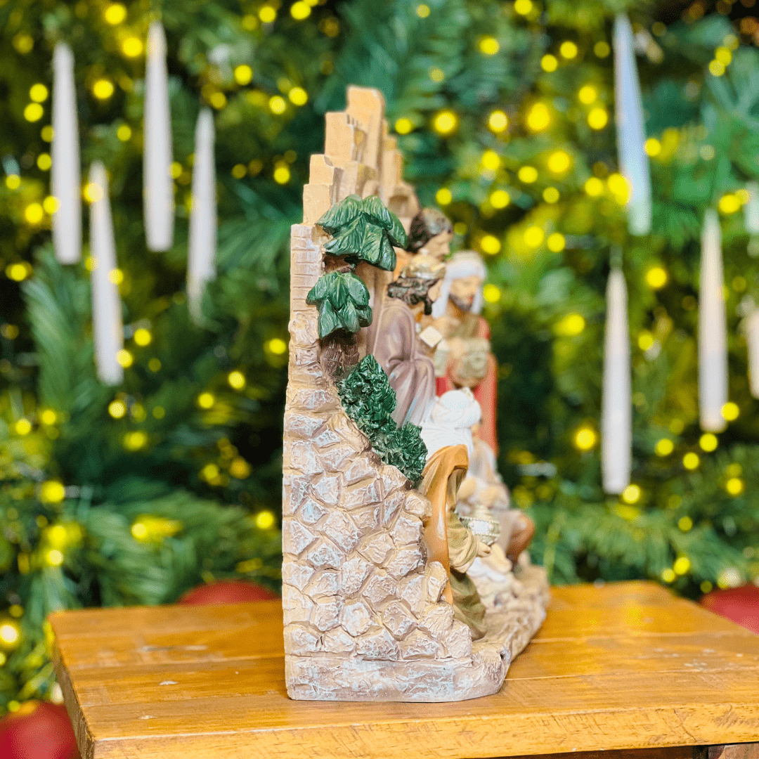 O Presépio com Cenário de Resina é uma peça elegante que traz toda a magia e espiritualidade do Natal. Com detalhes delicados e acabamento de qualidade, representa a tradicional cena natalina, ideal para decorar mesas, aparadores ou espaços especiais, tornando o ambiente acolhedor e cheio de significado durante as celebrações.